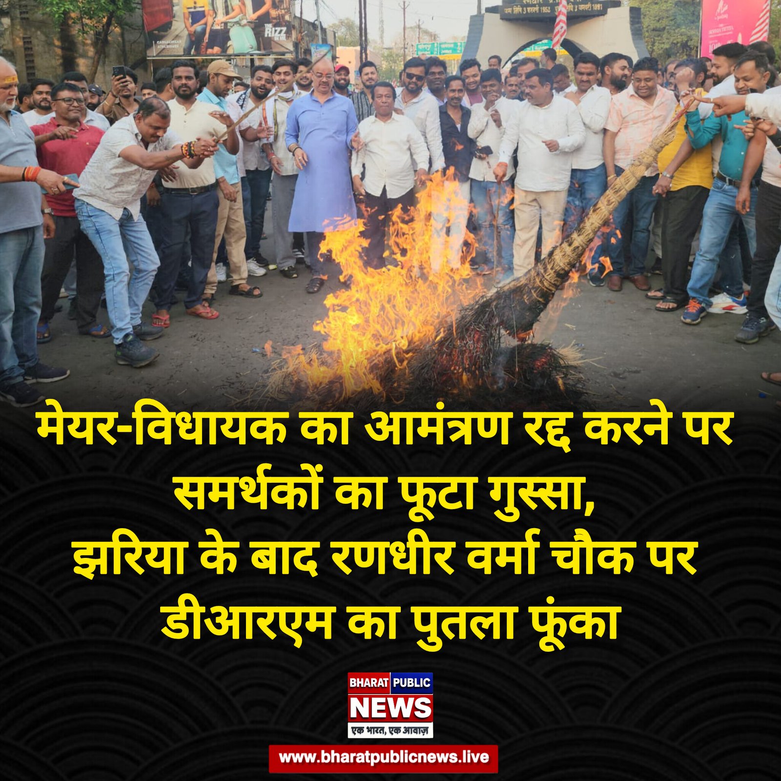 рдореЗрдпрд░-рд╡рд┐рдзрд╛рдпрдХ рдХрд╛ рдЖрдордВрддреНрд░рдг рд░рджреНрдж рдХрд░рдиреЗ рдкрд░ рд╕рдорд░реНрдердХреЛрдВ рдХрд╛ рдлреВрдЯрд╛ рдЧреБрд╕реНрд╕рд╛, рдЭрд░рд┐рдпрд╛ рдХреЗ рдмрд╛рдж рд░рдгрдзреАрд░ рд╡рд░реНрдорд╛ рдЪреМрдХ рдкрд░ рдбреАрдЖрд░рдПрдо рдХрд╛ рдкреБрддрд▓рд╛ рдлреВрдВрдХрд╛