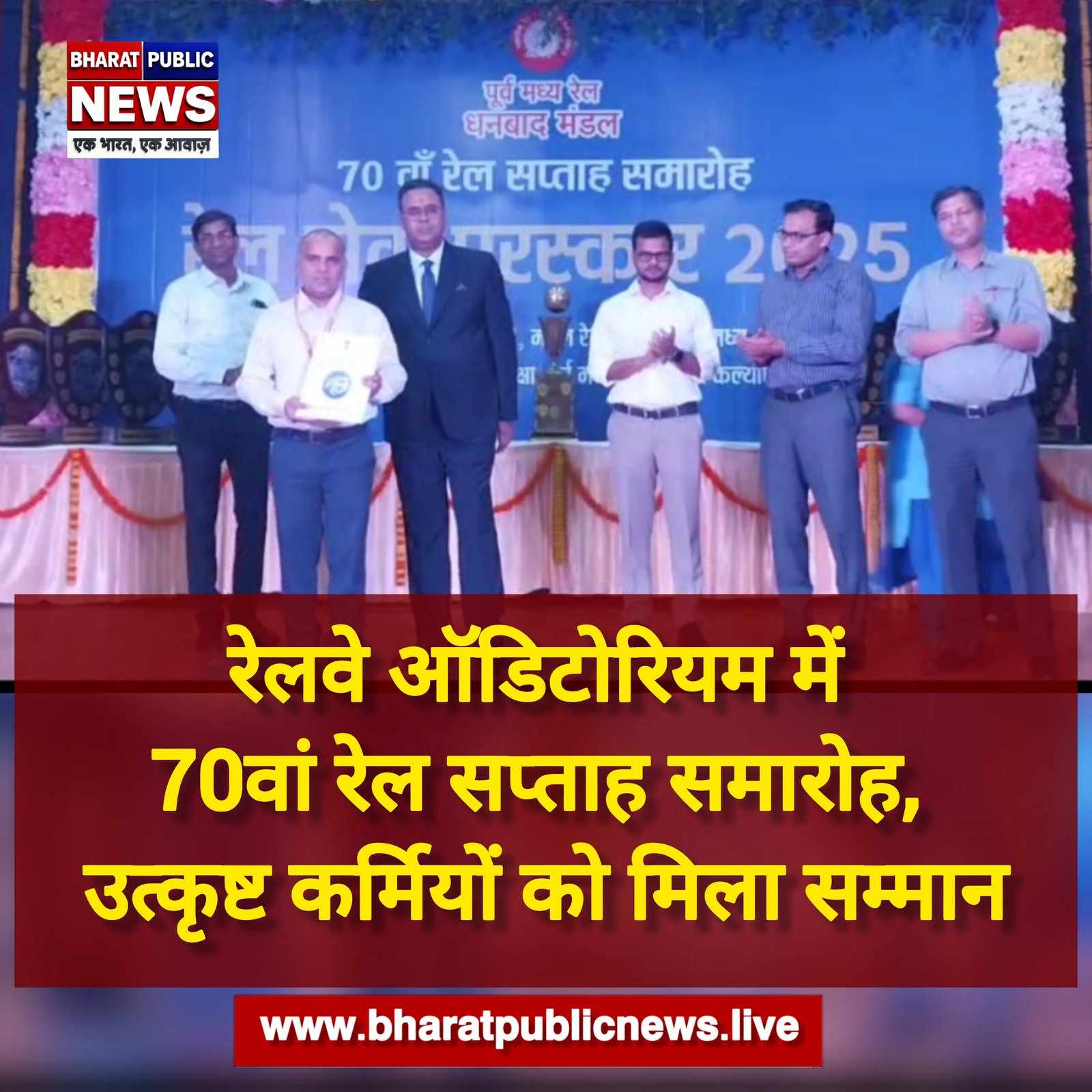 рд░реЗрд▓рд╡реЗ рдСрдбрд┐рдЯреЛрд░рд┐рдпрдо рдореЗрдВ 70рд╡рд╛рдВ рд░реЗрд▓ рд╕рдкреНрддрд╛рд╣ рд╕рдорд╛рд░реЛрд╣, рдЙрддреНрдХреГрд╖реНрдЯ рдХрд░реНрдорд┐рдпреЛрдВ рдХреЛ рдорд┐рд▓рд╛ рд╕рдореНрдорд╛рди