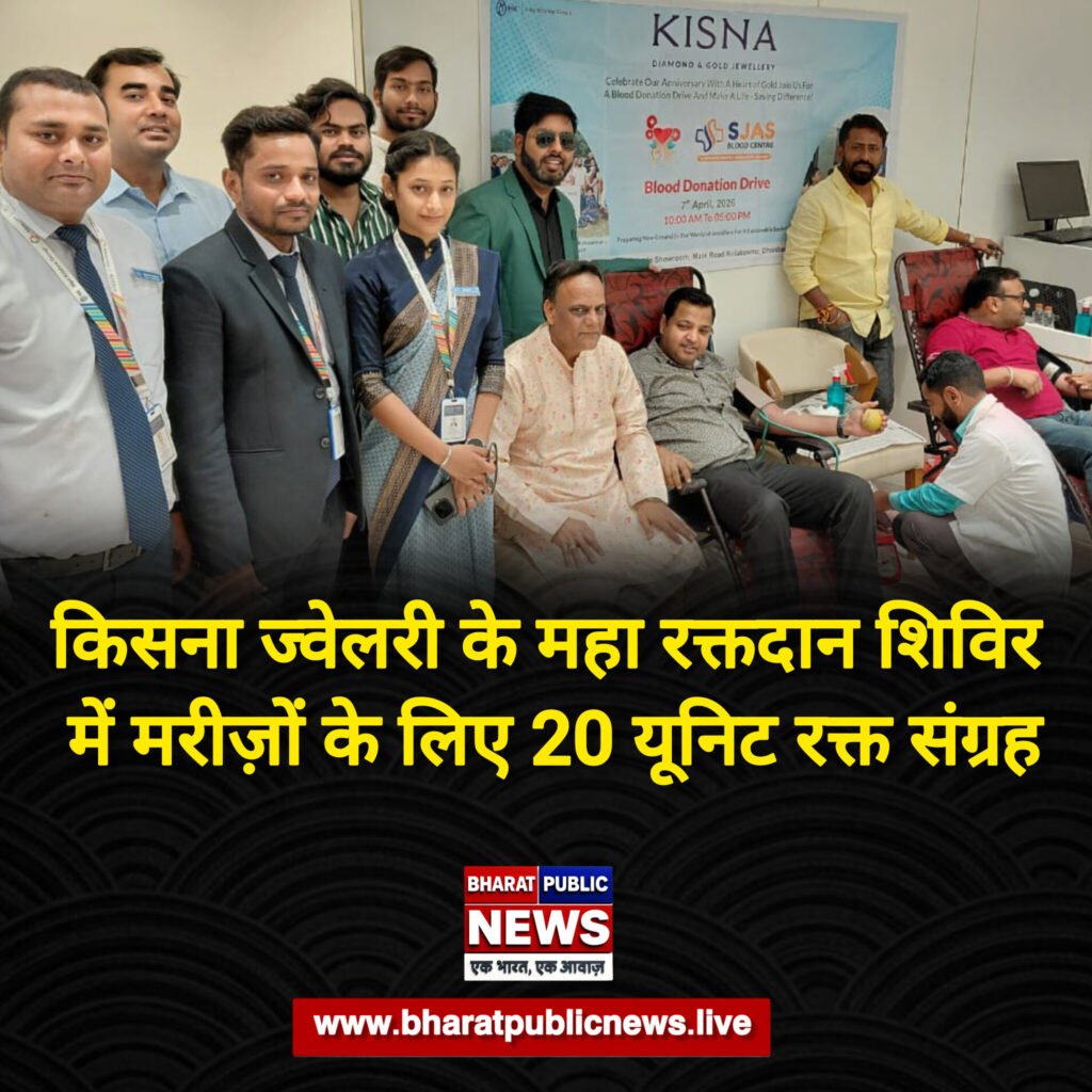 धनबाद: शहर के कोलाकुसमा स्थित किसना डायमंड एंड गोल्ड ज्वेलरी परिसर में मंगलवार को एक दिवसीय महा रक्तदान शिविर का आयोजन किया गया। यह शिविर हरे कृष्णा फाउंडेशन और किसना डायमंड एवं एसजेएएस ब्लड सेंटर के सहयोग से आयोजित हुआ।शिविर में बड़ी संख्या में लोगों ने बढ़-चढ़कर हिस्सा लिया और स्वेच्छा से रक्तदान किया। शोरूम की महिला एवं पुरुष स्टाफ ने भी रक्तदान किया ।इस दौरान कुल 20 यूनिट रक्त संग्रह किया गया। धनबाद किसना ज्वेलरी के ओनर दिनेश हेलीवाल ने बताया कि रक्तदान से जरूरतमंद मरीजों की जान बचाई जा सकती है और समाज में मानवता की भावना को मजबूत किया जा सकता है।कार्यक्रम में मौजूद लोगों को रक्तदान के प्रति जागरूक भी किया गया।ऑनर सचिन हेलीवाल ने रक्तदान किया और बताया की किसना डायमंड एंड गोल्ड ज्वैलरी,हरि कृष्णा ग्रुप मुख्य रूप से शिक्षा, स्वास्थ्य, पर्यावरण और सामुदायिक कल्याण के क्षेत्र में कॉर्पोरेट सामाजिक उत्तरदायित्व गतिविधियों के माध्यम से सामुदायिक विकास के तहत 100 शहरों में रक्तदान शिविर, जरूरतमंदों को भोजन और निःशुल्क नेत्र जांच शिविर आयोजन सक्रिय रूप से करता है। रक्तदान शिविर में धनबाद किसना ज्वैलरी के ओनर दिनेश हेलीवाल व सचिन हेलीवाल,आदित्य अग्रवाल, रचना अग्रवाल,किसना शोरूम की पूरी टीम ,एसजेएएस की रक्त विभाग की मेडिकल टीम व स्थानीय लोगों का महत्वपूर्ण योगदान रहा।