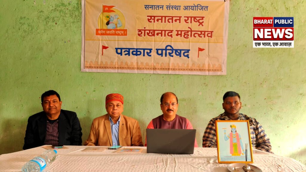 *धनबाद* – भारत ने ‘ऑपरेशन सिंदूर’ से लेकर अंतरिक्ष-तकनीक तक विश्वस्तर पर उल्लेखनीय प्रगति की है, फिर भी हाल ही में दिल्ली में हुए बम विस्फोट जैसी घटनाओं ने यह स्पष्ट कर दिया है कि राष्ट्र की सुरक्षा के सामने चुनौतियाँ और तीव्र हो रही हैं। केवल आतंकवाद ही नहीं, बल्कि राष्ट्रविरोधी विदेशी शक्तियाँ, नक्सलवाद, डीप स्टेट, लव जिहाद, लैंड जिहाद, हलाल जिहाद आदि अनेक माध्यमों से भारत को दुर्बल करने का प्रयास किया जा रहा है। ऐसे समय में केवल दिखावटी धर्मनिरपेक्षता और वोटों के लोभ में हो रहा तुष्टीकरण देश को और कमजोर करेगा। इस पृष्ठभूमि में भारतभूमी में प्रभु श्रीराम, श्रीकृष्ण, महाराणा प्रताप और छत्रपति शिवाजी महाराज जैसे महापुरुषों की तेजस्वी परंपरा को पुनः जागृत करना और ‘सुरक्षा, संस्कृति व शौर्य’ के लिए कार्य करना समय की आवश्यकता बन गया है। भारत को पुनः विश्वकल्याण हेतु ‘सनातन राष्ट्र’ रूप में उदय होने की आवश्यकता है। इसी संदेश को देशभर में पहुँचाने के उद्देश्य से ‘सेव कल्चर सेव भारत फाउंडेशन’ की प्रस्तुति में तथा सनातन संस्था के तत्वावधान में भव्य ‘सनातन राष्ट्र शंखनाद महोत्सव’ 13 और 14 दिसंबर 2025 को नई दिल्ली (इंद्रप्रस्थ) स्थित ‘भारत मंडपम’ में आयोजित होगा, *ऐसी जानकारी सनातन राष्ट्र शंखनाद महोत्सव स्वागत समिति सदस्य श्री शंभू गवारे ने दी।* धनबाद स्थित गांधी सेवा सदन परिसर, रणधीर वर्मा चौक, में हुई पत्रकार परिषद में *तरुण हिंदू, धनबाद के संस्थापक डॉ. नील माधव दास, विश्व हिंदू परिषद, धनबाद के जिला मंत्री श्री सुनील कुमार, आर्य समाज के झारखंड राज्य के उपदेशक सह प्रवक्ता श्री सौरभ कुमार एवं हिन्दू जनजागृति समिति के पूर्व- पूर्वोत्तर भारत राज्य समन्वयक श्री शंभू गवारे उपस्थित थे ।**तरुण हिन्दू के संस्थापक डॉ. नील माधव दास ने आगे कहा* कि विश्वकल्याण के लिए कार्यरत सनातन संस्था के संस्थापक सच्चिदानंद परब्रह्म डॉ. जयंत बालाजी आठवले के जन्मोत्सव अवसर पर गोवा में हुए प्रथम ‘शंखनाद महोत्सव’ में 23 देशों के 30,000 से भी अधिक भक्तों ने सहभागिता की थी। अनेक साधु-संतों, गोवा के मुख्यमंत्री तथा केंद्र व राज्य मंत्रियों की उपस्थिति से वह महोत्सव अत्यंत सफल रहा। अब दिल्ली का यह महोत्सव राष्ट्रीय स्तर पर ऐतिहासिक होने जा रहा है। सच्चिदानंद परब्रह्म डॉ. आठवले ने रामराज्य समान आदर्श ‘सनातन राष्ट्र’ की स्थापना का पवित्र संकल्प लिया है। महाभारत युद्ध से पूर्व भगवान श्रीकृष्ण ने जैसे धर्मयुद्ध का शंखनाद किया था, वैसे ही यह महोत्सव धर्मनिष्ठ समाज की आत्मशक्ति को जागृत कर धर्मसेवा व राष्ट्रसेवा की प्रेरणा देगा। यह केवल एक कार्यक्रम न होकर राष्ट्ररक्षा, सामाजिक एकता और संस्कृति को नवचैतन्य देन