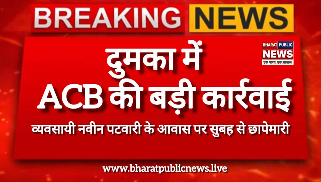 दुमका में एंटी करप्शन ब्यूरो ने आज सुबह बड़ी कार्रवाई शुरू की। प्रतिष्ठित कारोबारी नवीन पटवारी के आवास पर सुबह करीब 7:30 बजे से छापेमारी जारी है। बताया जा रहा है कि जिस आवास पर कार्रवाई हो रही है, वहां नवीन पटवारी सहित उनके तीन भाई रहते हैं। छापेमारी के दौरान पूरे इलाके में सुरक्षा व्यवस्था कड़ी कर दी गई है। ACB की टीम घर के अंदर दस्तावेजों और अन्य संदेहास्पद सामग्री की जांच कर रही है। हालांकि, कार्रवाई से संबंधित अधिकारी अभी तक किसी भी प्रकार की जानकारी साझा करने से साफ इंकार कर रहे हैं। ACB की इस अचानक कार्रवाई से इलाके में हलचल मच गई है, जबकि लोग मामले से जुड़े तथ्यों को जानने के लिए उत्सुक हैं। फिलहाल छापेमारी जारी है और आगे की जानकारी का इंतजार है।