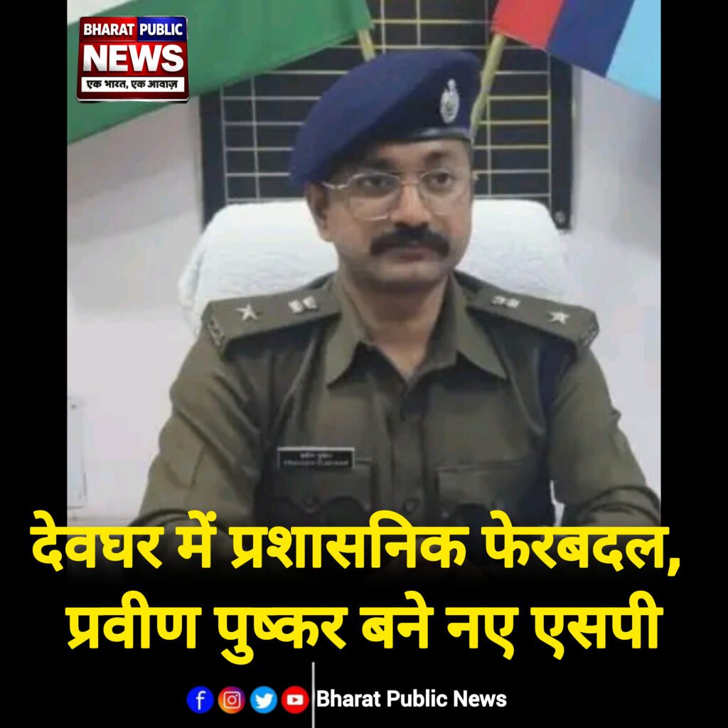 देवघर : झारखंड सरकार ने बड़े प्रशासनिक फेरबदल के तहत देवघर जिले के पुलिस अधीक्षक (एसपी) पद पर बदलाव किया है। सरकार ने प्रवीण पुष्कर को देवघर का नया एसपी नियुक्त किया है।वहीं, वर्तमान एसपी सौरभ को स्थानांतरित कर विशेष शाखा (एसआईबी) में एसपी की जिम्मेदारी सौंपी गई है। अब सौरभ अपनी नई भूमिका में कार्यभार संभालेंगे।प्रवीण पुष्कर अब देवघर जिले की कानून-व्यवस्था की कमान संभालेंगे। उनसे जिले में अपराध नियंत्रण और सुरक्षा व्यवस्था को और अधिक मजबूत बनाने की उम्मीद की जा रही है।बताया जा रहा है कि एसपी सौरभ के कार्यकाल में कई महत्वपूर्ण पुलिस कार्रवाइयां और प्रशासनिक पहल देखने को मिली थीं। अब नए एसपी के रूप में प्रवीण पुष्कर के सामने कानून-व्यवस्था को और प्रभावी बनाने की चुनौती होगी।