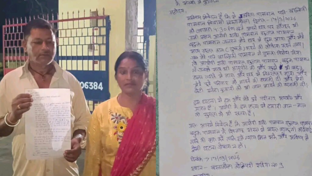 झरिया : झरिया थाना क्षेत्र के बस्ताकोला में एक महिला ने स्थानीय युवक पर दुष्कर्म का प्रयास और मारपीट करने का गंभीर आरोप लगाया है। इस संबंध में पीड़िता कविता पासवान ने झरिया थाना में लिखित शिकायत दर्ज कराई है।पीड़िता ने अपने आवेदन में बताया कि 17 मार्च की शाम करीब 4:30 बजे वह अपने घर पर मौजूद थी। इसी दौरान शशि पासवान, गुलाम पासवान और बटुक पासवान जबरन उसके घर में घुस आए और उसके साथ दुष्कर्म करने का प्रयास करने लगे। शोर सुनकर जब उसके पति बाल्मिकी पासवान ने विरोध किया, तो आरोपियों ने उनके साथ भी मारपीट शुरू कर दी।महिला का आरोप है कि आरोपियों ने उसे भी बुरी तरह पीटा और घर से बाहर निकालकर मारपीट की। इतना ही नहीं, पूरे परिवार को जान से मारने की धमकी भी दी गई। पीड़िता ने बताया कि उसकी बेटी स्नेहा कुमारी को भी जान से मारने की धमकी दी गई है, जिससे पूरा परिवार दहशत में है।घटना के बाद पीड़िता ने पुलिस से सुरक्षा और न्याय की गुहार लगाई है। पुलिस मामले की जांच में जुट गई है।