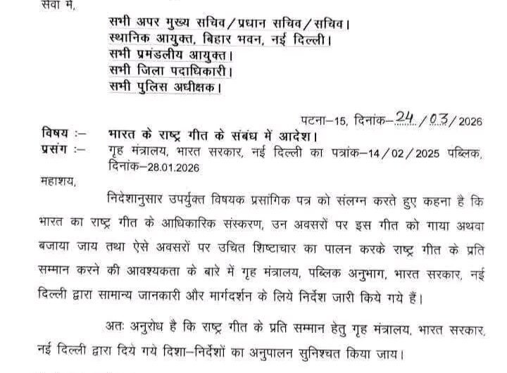 पटना : बिहार सरकार ने राष्ट्रीय चेतना और देशभक्ति को बढ़ावा देने के लिए अहम कदम उठाया...