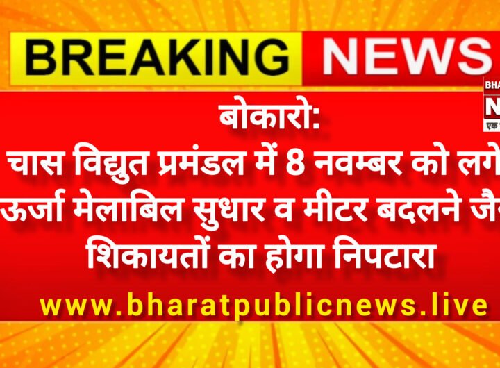 बोकारो : विद्युत आपूर्ति प्रमंडल, चास की ओर से 8 नवम्बर 2025 (बुधवार) को पूर्वाह्न 11:00 बजे...