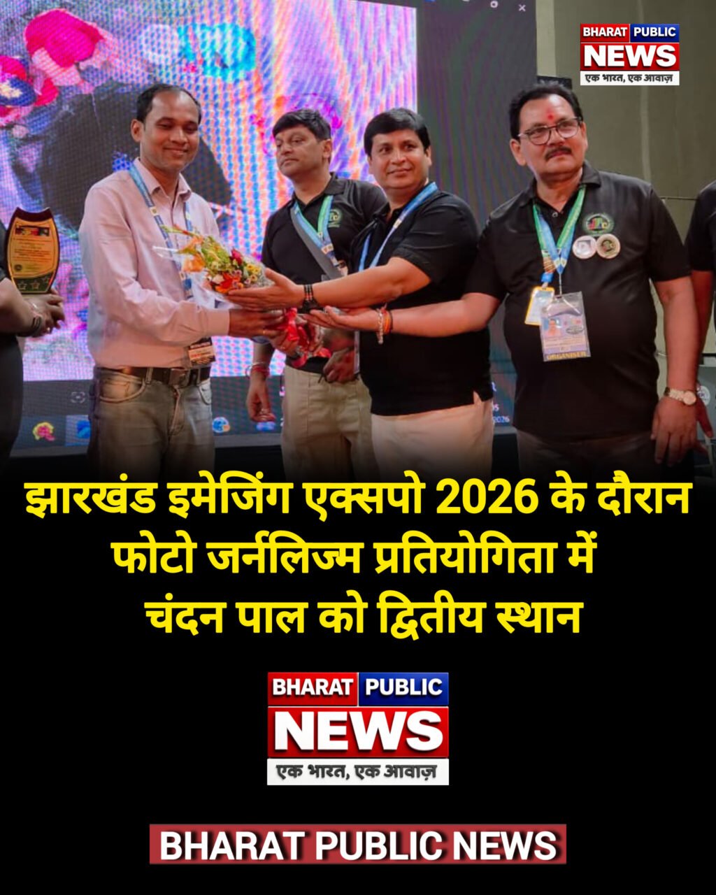 धनबाद : रांची में आयोजित झारखंड इमेजिंग एक्सपो 2026 के दौरान फोटो जर्नलिज्म प्रतियोगिता में चंदन पाल ने शानदार प्रदर्शन करते हुए द्वितीय स्थान प्राप्त किया। तीन दिवसीय इस भव्य आयोजन का समापन रांची के हरिवंश ताना भगत इंडोर स्टेडियम, खेलगांव में हुआ, जहां देश के विभिन्न राज्यों से आए प्रतिभागियों ने अपनी रचनात्मकता और कौशल का प्रदर्शन किया। फोटो जर्नलिज्म कैटेगरी में कोलकाता के शांतनु ने प्रथम स्थान , जबकि पाकुड़ के पीटरसन बास्की को तृतीय पुरस्कार मिला। चंदन पाल धनबाद स्थित “चंदन स्टूडियो” के संचालक हैं और पिछले कई वर्षों से फोटोग्राफी के क्षेत्र में सक्रिय हैं। वे खासकर फोटो जर्नलिज्म और इवेंट फोटोग्राफी के लिए जाने जाते हैं। सामाजिक, सांस्कृतिक और समाचार से जुड़े पलों को कैमरे में प्रभावशाली तरीके से कैद करना उनकी खासियत है। इससे पहले भी वे कई क्षेत्रीय और राज्य स्तरीय प्रतियोगिताओं में सम्मानित हो चुके हैं।इस प्रतियोगिता में उनकी प्रस्तुति ने जजों को काफी प्रभावित किया, जिसके परिणामस्वरूप उन्हें द्वितीय पुरस्कार से नवाजा गया। समापन समारोह के दौरान आयोजकों ने उन्हें मोमेंटो, प्रमाण पत्र और नगद राशि देकर सम्मानित किया।उनकी इस सफलता से धनबाद के स्थानीय फोटोग्राफर्स में उत्साह का माहौल है। चंदन पाल की यह उपलब्धि यह दर्शाती है कि छोटे शहरों के प्रतिभाशाली कलाकार भी राष्ट्रीय स्तर पर अपनी पहचान बना सकते हैं।