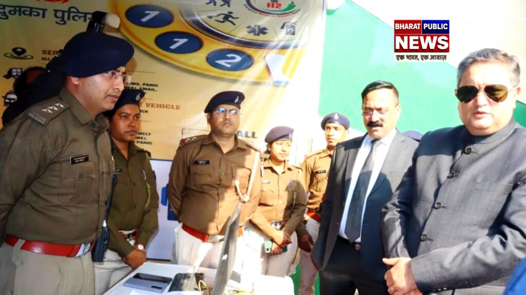 झारखंड के माननीय मुख्य_न्यायाधीश न्यायमूर्ति तरलोक सिंह चौहान ने आज कन्विंसिंग सेंटर दुमका में आयोजित कार्यक्रम के दौरान दुमका पुलिस द्वारा लगाए गए काउंटर का निरीक्षण किया। हमारे वरिय पुलिस पदाधिकारी द्वारा सड़क सुरक्षा, डायल 112 (आपातकालीन सेवा), डायल 108 (एंबुलेंस सेवा), डायल 1930 (साइबर सुरक्षा) एवं नशा मुक्ति हेतु लोगों को जागरूक करने से संबंधित किए जा रहे कार्यों से माननीय न्यायाधीश को अवगत कराया गया।