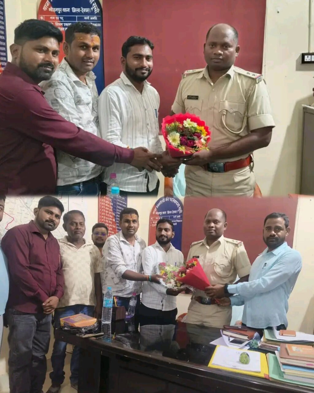 देवघर। मोहनपुर थाना में नवपदस्थापित थाना प्रभारी सालो हेम्ब्रम से गुरुवार को प्रतिनिधिमंडल ने शिष्टाचार मुलाकात की और उनके मोहनपुर आगमन पर स्वागत किया। इस दौरान थाना परिसर में सौहार्दपूर्ण माहौल के बीच क्षेत्र की सुरक्षा, शांति व्यवस्था और जनहित से जुड़े मुद्दों पर विस्तार से बातचीत हुई। प्रतिनिधिमंडल ने थाना प्रभारी से इलाके में बढ़ती छोटी-बड़ी आपराधिक गतिविधियों पर प्रभावी नियंत्रण की आवश्यकता पर ध्यान आकृष्ट कराया। साथ ही आम नागरिकों की सुरक्षा और त्वरित पुलिस कार्रवाई को लेकर भी अपेक्षाएं व्यक्त की गईं। थाना प्रभारी ने भरोसा दिलाया कि कानून-व्यवस्था बनाए रखना उनकी प्राथमिकता होगी और हर शिकायत पर गंभीरता से कार्रवाई की जाएगी। जानकारी के अनुसार, सालो हेम्ब्रम इससे पहले पथरड्डा और पालाजोरी थाना में प्रभारी के रूप में कार्य कर चुके हैं। अपने पूर्व अनुभव के आधार पर उनसे मोहनपुर क्षेत्र में बेहतर पुलिसिंग की उम्मीद जताई जा रही है।मुलाकात के दौरान आपसी समन्वय को मजबूत करने पर सहमति बनी, ताकि क्षेत्र में शांति और सुरक्षा का माहौल कायम रखा जा सके।