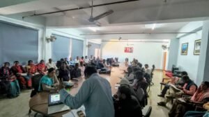 उपायुक्त सह जिला दंडाधिकारी आदित्य रंजन के निर्देशानुसार नगरपालिका (आम) चुनाव 2026 के आलोक में आज श्री श्री लक्ष्मी नारायण ट्रस्ट (एसएसएलएनटी) महिला महाविद्यालय में पीठासीन पदाधिकारी एवं मतदान पदाधिकारियों को पावर पोइंट के माध्यम एवं चुनाव आयोग के गाइड लाइन के अनुसार जीरो एरर पर प्रशिक्षण दिया गया।इस दौरान निर्वाची पदाधिकारी (महापौर) सह अपर समाहर्ता श्री विनोद कुमार ने प्रशिक्षण के महत्वपूर्ण बिंदुओं पर प्रकाश डाला। उन्होंने पर परिस्थितियों में बैलट बॉक्स को पानी और आग से बचाने, सभी महत्वपूर्ण पैकेट पर सावधानी से लाह लगाने, लाह को आग से पिघलाकर लगाने से पूर्व पूरी सावधानी बरतने का निर्देश दिया। साथ ही सभी पीठासीन पदाधिकारियों को आयोग के निर्देशानुसार अपने दायित्वों का निर्वहन करने का निर्देश दिया। उन्होंने कहा कि आयोग के निर्देशानुसार कार्य करने से गलती की संभावना नहीं के बराबर रहती है। उन्होंने सभी से समय का पालन करने तथा मतदान के दिन, 23 फरवरी 2026, की सुबह 7 बजे मतदान प्रारम्भ करने का निर्देश दिया।प्रशिक्षण के दौरान मतपत्र को सही तरीके से मोड़कर मतदाता को देने सहित अन्य निर्देश दिए। प्रशिक्षण सत्र में आपदा प्रबंधन पदाधिकारी श्री संजय कुमार झा, मुख्य प्रशिक्षक श्री दिलीप कुमार कर्ण, श्री राज कुमार वर्मा, श्री संजय कुमार, श्री कुमार वंदन, श्री उमेश लाल आदि उपस्थित थे।