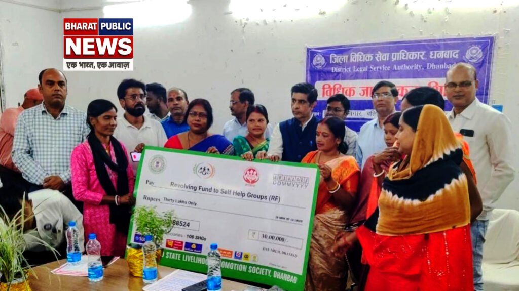 *विभिन्न सरकारी योजनाओं से लोगों को किया लाभान्वित*जिला विधिक सेवा प्राधिकरण (डालसा) धनबाद द्वारा आज बलियापुर प्रखंड सभागार में एक दिवसीय विधिक जागरूकता शिविर का आयोजन किया गया। इस अवसर पर मुख्य अतिथि सह जिला एवं सत्र न्यायाधीश श्री विकेश ने दीप प्रज्ज्वलित कर इसका उद्घाटन किया। जिला जज ने जिला विधिक सेवा प्राधिकरण द्वारा दी जा रही निःशुल्क विधिक सहायता एवं त्वरित न्याय की जानकारी दी। चीफ लीगल एड डिफेंस काउंसिल डॉ कुमार विमलेंदु ने कारागार में बंदियों के अधिकार के बारे में जानकारी दी।वहीं प्रखंड विकास पदाधिकारी एवं अंचल अधिकारी ने सरकार द्वारा चलाई जा रही विभिन्न जनकल्याणकारी योजनाओं की जानकारी दी। इस कड़ी में जेएसएलपीएस के माध्यम से महिलाओं को सशक्त बनाने के लिए एसएचजी समूह के बीच 30 लाख रुपए के चेक का वितरण किया गया। साथ ही मनरेगा जॉब कार्ड, राशन कार्ड, वृद्धा पेंशन, दिव्यांग पेंशन, आबुआ आवास आदि योजनाओं के लाभार्थियों के बीच लाभों का वितरण किया गया।मौके पर बलियापुर प्रखंड के प्रखंड विकास पदाधिकारी श्री प्रभाष चंद्र दास, अंचल अधिकारी श्री मुरारी नायक, प्रखंड प्रमुख पिंकी देवी के अलावा डालसा सहायक सौरभ सरकार, सहायक एलएडीसीएस नीरज गोयल, शैलेंद्र झा, अधिकार मित्र नवीन कुमार, एजाज अहमद, जगदीप रजक, उमाशंकर मंडल, संतोष सिंह, आनंद चक्रवर्ती, काजल कुमारी, राजू प्रमाणिक, कविता कुमारी, संतोष सिंह, समाज सेवक विजय रजक एवं जेएसएलपीएस के सखी मंडल, सेविका एवं ग्रामीण उपस्थित थे।