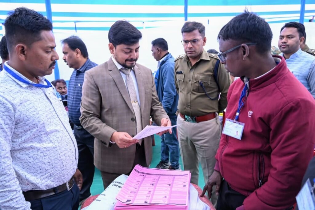 *_हर काउंटर का भ्रमण कर की कर्मियों की हौसला अफजाई_**टू लेयर सिक्योरिटी से गुजर कर वाहन हुए मतदान केंद्रों के लिए रवाना**_23 ग्रीन कॉरिडोर होकर सुगमता से गुजरी पोलिंग पार्टियां_**चुनाव में व्यवधान डालने वालों के विरुद्ध होगी कठोर से कठोर कार्रवाई**_मतदाताओं से चुनाव में बढ़ चढ़कर हिस्सा लेने की प्रशासन ने की अपील_*जिला निर्वाचन पदाधिकारी (नगर पालिका) सह उपायुक्त आदित्य रंजन एवं वरीय पुलिस अधीक्षक प्रभात कुमार ने नगर निकाय चुनाव को लेकर रविवार सुबह 8:30 बजे मेगा स्पोर्ट्स कंपलेक्स से धनबाद नगर निगम एवं चिरकुंडा नगर परिषद के 1019 बूथ की पोलिंग पार्टियों को चुनाव सामग्री लेकर रवाना किया गया।पोलिंग पार्टियों को रवाना करने से पहले उपायुक्त आदित्य रंजन, वरीय पुलिस अधीक्षक प्रभात कुमार, उप विकास आयुक्त सन्नी राज, अनुमंडल दंडाधिकारी लोकेश बारंगे, उप निर्वाचन पदाधिकारी (नगरपालिका) श्री मुकेश कुमार बाउरी ने डिस्पैच सेंटर के हर पंडाल का भ्रमण कर पोलिंग पदाधिकारियों की हौसला अफजाई की।डिस्पैच सेंटर में धनबाद नगर निगम के वार्ड संख्या 1 से 5, 6 से 10, 11 से 15, 16 से 20, 21 से 25, 26 से 30, 31 से 35, 36 से 40, 41 से 45, 46 से 50 एवं 51 से 55 वार्ड के लिए 11 पंडाल बनाए गए थे। जबकि चिरकुंडा नगर परिषद के वार्ड संख्या 1 से 21 के लिए एक पंडाल बनाया गया था। सभी पंडालों में संबंधित निर्वाची पदाधिकारी एवं सहायक निर्वाची पदाधिकारी ने सामग्री का मिलान कर पोलिंग पार्टी को सौंपी।डिस्पैच सेंटर में धनबाद नगर निगम तथा चिरकुंडा नगर परिषद के लिए अलग-अलग वाहन पड़ाव बनाए गए थे। वहीं सेंटर के मुख्य गेट पर वाहन कोषांग द्वारा पोलिंग पदाधिकारियों को मार्गदर्शन देकर संबंधित वाहनों में बैठाया गया। डिस्पैच सेंटर में वाहनों को टू लेयर सिक्योरिटी पर अच्छे से जांच पड़ताल कर संबंधित मतदान केंद्र के लिए रवाना किया गया। गंतव्य तक पहुंचाने के लिए 23 ग्रीन कॉरिडोर बनाए गए थे। जिससे गुजरकर सारे वाहन सुगमता से अपने-अपने मतदान केंद्रों तक पहुंचे। वहीं जिले के चौक चराहों पर सामान्य ट्रैफिक को रोककर चुनाव कार्य में लगे वहनों को पहले रवाना किया गया। वाहनों के साथ पूरे यात्रा मार्ग में पुलिस की टीम मौजूद रही। वहीं पोलिंग पार्टियों को रवाना करने के बाद उपायुक्त ने कहा कि सभी पोलिंग पार्टियों बहुत ही सुगमता से अपने-अपने बूथों के लिए रवाना हो गई है। सभी सेक्टर मजिस्ट्रेट तथा निर्वाची पदाधिकारी को मतदान केंद्र पर सभी सुविधाएं सुनिश्चित करने का निर्देश दिया है। चुनाव को लेकर कंट्रोल रूम से कड़ी निगरानी रखी जा रही है। उन्होंने कहा कि पोलिंग पार्टियों को निर्देश दिया है कि अपने मतदान केंद्र पर पहुंचकर सामग्री को चेक कर लें। यदि कोई कमी है तो संबंधित सेक्टर मजिस्ट्रेट या 