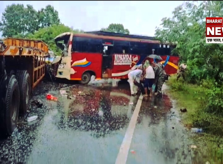 *टुण्डी अलकुसिया जोरिया जंगल के समक्ष मिश्रा बस एवं ट्रेलर में हुई जोरदार भिड़ंत।।* *टे्लर चालक के...