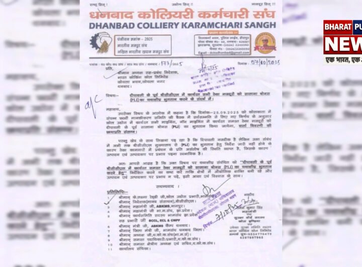 धनबाद: मंगलवार को संघ के महामंत्री सह कोल इंडिया सुरक्षा बोर्ड सदस्य उमेश कुमार सिंह द्वारा बीसीसीएल...