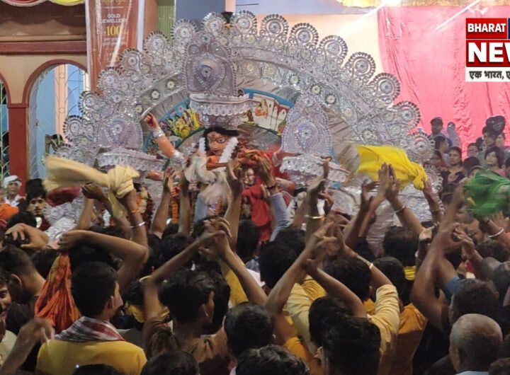 धनबाद : हीरापुर के हरि मंदिर में विजयादशमी के दिन मां दुर्गा की प्रतिमा को कंधे पर...