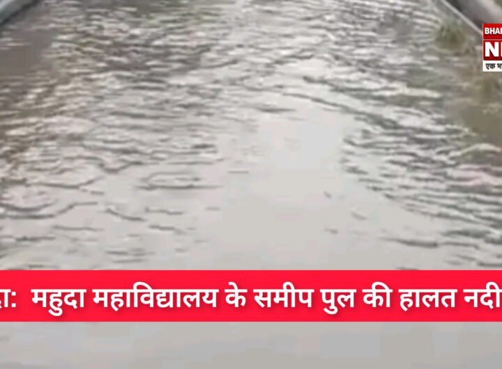 महुदा: महुदा महाविद्यालय के समीप पुल की हालत नदी जैसा है,उक्त पुल से महुदा लाल बंगला मोड़...