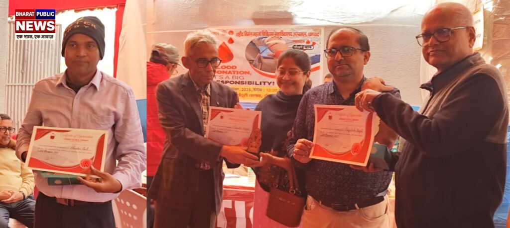 धनबाद: हीरापुर स्थित प्रतिष्ठित सामाजिक संस्था लिंडसे क्लब एंड लाइब्रेरी द्वारा पौष पारबोन उत्सव के दौरान रविवार को एक स्वैच्छिक रक्तदान शिविर का आयोजन किया गया। क्लब परिसर में आयोजित इस शिविर का उद्देश्य सांस्कृतिक गतिविधियों के साथ-साथ सामाजिक उत्तरदायित्व का निर्वहन करना रहा। शिविर का आयोजन शहीद निर्मल महतो मेडिकल कॉलेज हॉस्पिटल के तकनीकी सहयोग से सुरक्षित एवं सुव्यवस्थित ढंग से संपन्न हुआ।क्लब परिसर में आयोजित इस शिविर में मुख्य अतिथि के रूप में जिले के सिविल सर्जन डॉक्टर आलोक विश्वकर्मा ने रक्तदाताओं को रक्तदान के महत्व एवं इसके फायदे के बारे में जानकारी दी। इस अवसर पर क्लब के सचिव सलिल विश्वास ने कहा कि “रक्तदान से बड़ा कोई दान नहीं है। एक यूनिट रक्त किसी जरूरतमंद की जान बचा सकता है। लिंडसे क्लब केवल सांस्कृतिक गतिविधियों तक सीमित नहीं है, बल्कि समाज के प्रति अपनी जिम्मेदारी को पूरी निष्ठा से निभाता रहा है।”वहीं अध्यक्ष अमलेंदु सिन्हा ने रक्तदाताओं का आभार व्यक्त करते हुए कहा कि “आज के व्यस्त जीवन में इस प्रकार के शिविरों का महत्व और भी बढ़ जाता है। युवाओं में रक्तदान को लेकर जो उत्साह देखा गया, वह समाज के लिए अत्यंत सकारात्मक संकेत है। अस्पताल के डॉक्टरों एवं स्वास्थ्यकर्मियों के सहयोग से शिविर को पूर्णतः सुरक्षित और स्वच्छ वातावरण में आयोजित किया गया।” इस रक्तदान शिविर में क्लब के सदस्यों के साथ-साथ स्थानीय युवाओं ने भी बढ़-चढ़कर हिस्सा लिया। दोपहर तक 34 यूनिट रक्त संग्रह किया जा चुका था। रक्तदाताओं के लिए जलपान एवं विश्राम की समुचित व्यवस्था की गई थी।इस अवसर पर पीएमसीएच की मेडिकल टीम द्वारा रक्तदाताओं को कॉफी मग क्लब के तरफ से मोमेंटो व प्रमाणपत्र भी प्रदान किए गए। संस्था के पदाधिकारियों ने बताया कि लिंडसे क्लब एंड लाइब्रेरी आने वाले समय में स्वास्थ्य जांच शिविर, पर्यावरण संरक्षण और सामाजिक जागरूकता से जुड़े कार्यक्रमों को और व्यापक रूप से आयोजित करेगी।कार्यक्रम को सफल बनाने में क्लब के अन्य पदाधिकारियों, सदस्यों एवं स्वयंसेवकों की महत्वपूर्ण भूमिका रही।