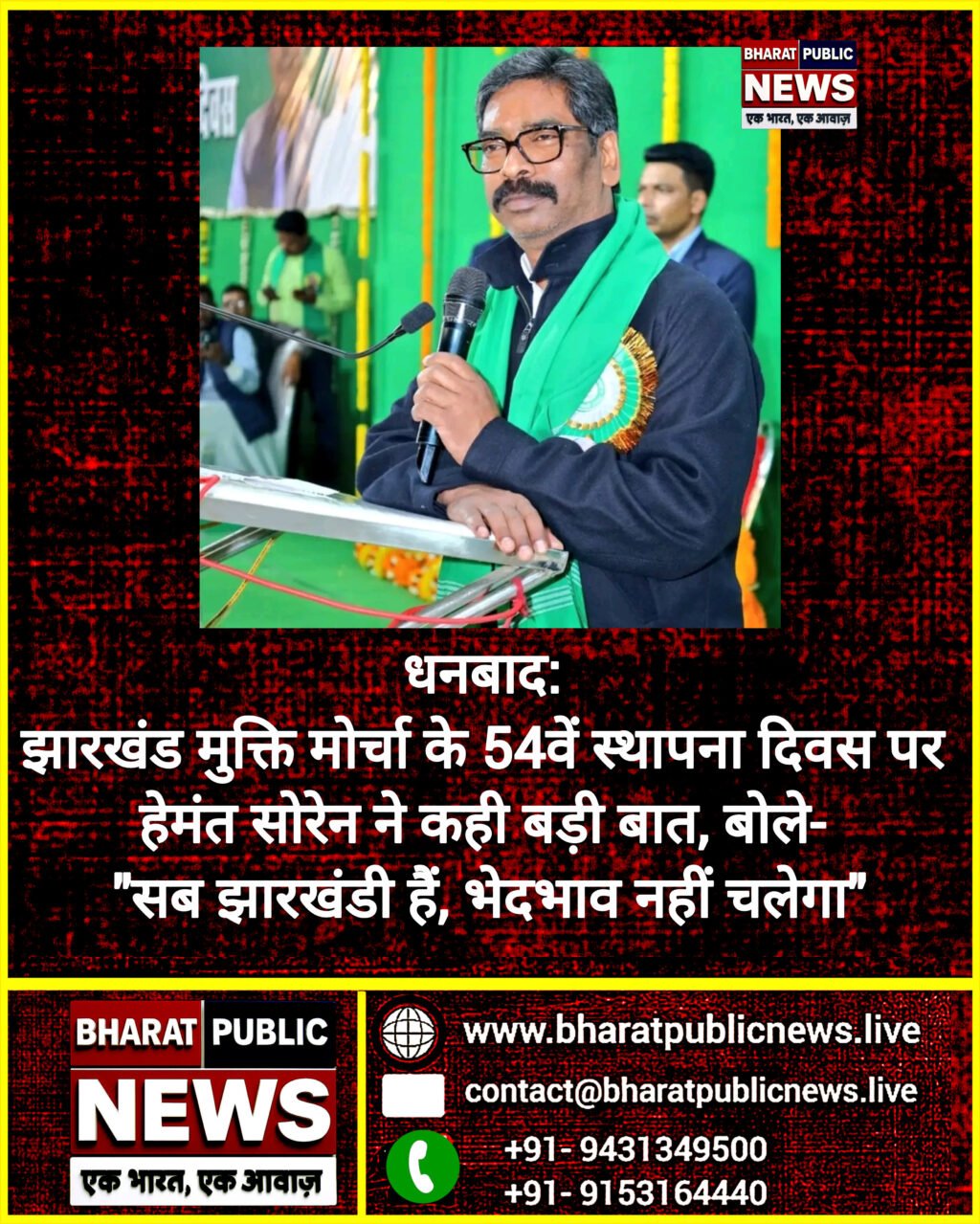धनबाद : झारखंड मुक्ति मोर्चा (झामुमो) ने 4 फरवरी को अपने 54वें स्थापना दिवस को भव्य रूप से मनाया। इस खास अवसर पर मुख्यमंत्री और झामुमो के राष्ट्रीय अध्यक्ष हेमंत सोरेन ने न केवल पार्टी की स्थापना की याद दिलाई, बल्कि राज्य में बढ़ती सामाजिक एकता और समरसता का जोरदार संदेश भी दिया।हेमंत सोरेन ने सभी आदिवासी, दलित, मजदूर और बाहर से आए हुए झारखंडवासियों को एक परिवार बताते हुए कहा, “अब समय आ गया है कि हम ‘दिकू’ और ‘मूलवासी’ जैसे भेदभाव भरे शब्दों को भूलकर एक साथ झारखंड की खुशहाली के लिए काम करें। झारखंडी होने का मतलब है, अपनत्व और भाईचारा।”उन्होंने कहा कि झामुमो की स्थापना 4 फरवरी 1973 को धनबाद में हुई थी और तब से यह पार्टी झारखंड के लिए संघर्ष, न्याय और सांस्कृतिक गौरव की प्रतीक रही है। “हमारे लिए ‘जोहार’ केवल अभिवादन नहीं, बल्कि एक सामाजिक समझौता है, जो पूरी दुनिया में अब सम्मानित हो रहा है। चाहे लंदन हो या दिल्ली, लोग ‘जोहार’ बोल रहे हैं। यह झारखंड की पहचान है।”हेमंत सोरेन ने आदिवासी नेता और दिशोम गुरु स्वर्गीय शिबू सोरेन को याद करते हुए कहा, “उनकी वैचारिक विरासत और संघर्षशील परंपरा हमें हमेशा प्रेरित करती रहेगी। उन्होंने आदिवासी, दलित और मजदूर वर्ग के लिए जो रास्ता दिखाया, उसे हम पूरी ताकत से आगे बढ़ाएंगे।”कार्यक्रम में झामुमो के कई वरिष्ठ नेता और हजारों कार्यकर्ता शामिल हुए, जिन्होंने जमकर नारे लगाए और संगठन को और मजबूत करने का संकल्प लिया। आयोजन में आदिवासी नृत्य, गीत और सांस्कृतिक प्रस्तुतियों ने उत्सव की भव्यता को चार चांद लगा दिए।इस मौके पर हेमंत सोरेन ने भविष्य की चुनौतियों का भी जिक्र किया और कहा कि झारखंड की सरकार जनहित, सामाजिक न्याय और विकास को सर्वोच्च प्राथमिकता दे रही है। उन्होंने कहा कि झामुमो सभी वर्गों को साथ लेकर ही राज्य को प्रगति के रास्ते पर ले जाएगा।