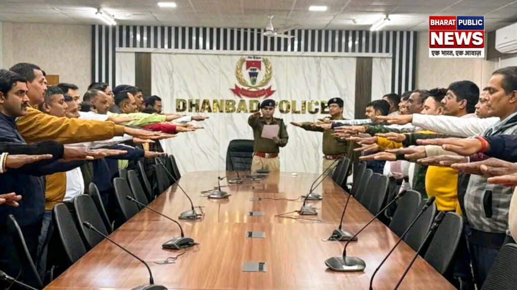 भारत के संविधान अपनाए जाने की ऐतिहासिक तिथि संविधान दिवस के अवसर पर बुधवार को धनबाद पुलिस की ओर से जिलेभर में विशेष कार्यक्रम का आयोजन किया गया। पुलिस मुख्यालय सहित सभी थाना, ओपी, पुलिस केंद्रों एवं विभिन्न पुलिस कार्यालयों में यह कार्यक्रम एक साथ आयोजित किया गया।कार्यक्रम की शुरुआत संविधान निर्माता डॉक्टर भीमराव आंबेडकर व अन्य संविधान रचनाकारों को श्रद्धांजलि देकर की गई। इसके उपरांत वरीय पदाधिकारियों के नेतृत्व में सभी मौजूद अधिकारियों एवं पुलिस जवानों ने संविधान की प्रस्तावना का सामूहिक वाचन किया और संविधान की गरिमा, नागरिक अधिकारों की रक्षा तथा कर्तव्यों के सम्मान का संकल्प लिया।इस अवसर पर पुलिस मुख्यालय में आयोजित कार्यक्रम के दौरान सिटी एसपी श्री रित्विक श्रीवास्तव ने कहा कि भारतीय संविधान केवल एक दस्तावेज़ नहीं, बल्कि देश की आत्मा और लोकतांत्रिक व्यवस्था की आधारशिला है। एक पुलिस अधिकारी के रूप में हमारा यह दायित्व है कि हम संविधान द्वारा प्रदत्त मौलिक अधिकारों की रक्षा करें और न्याय एवं कानून-व्यवस्था को और मजबूत बनाने की दिशा में कार्य करें। संवेदनशीलता, निष्पक्षता और सत्यनिष्ठा हमारी कार्यशैली का हिस्सा होनी चाहिए।उन्होंने आगे कहा कि संविधान देश की एकता और विविधता का प्रतीक है और पुलिसकर्मियों को अपने दायित्वों का निर्वहन करते हुए संविधान की भावनाओं को सदैव सर्वोपरि रखना चाहिए।कार्यक्रम में बड़ी संख्या में जिले के पुलिस अधिकारी, जवान और अन्य कर्मी उपस्थित रहे। कार्यक्रम के अंत में सभी ने लोकतांत्रिक मूल्यों और राष्ट्रीय कर्तव्य पालन की शपथ को दोहराया।