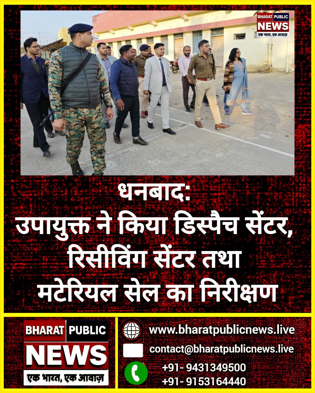 *नगरपालिका (आम) निर्वाचन 2026 के सफल, निष्पक्ष एवं शांतिपूर्ण संचालन को सुनिश्चित करने के निर्देश**राज्य निर्वाचन आयोग, झारखण्ड द्वारा निर्गत सभी दिशा-निर्देशों का करें अक्षरशः अनुपालन – उपायुक्त*नगरपालिका (आम) निर्वाचन 2026 के सफल, निष्पक्ष एवं शांतिपूर्ण संचालन को सुनिश्चित करने के उद्देश्य से आज दिनांक 02 फरवरी 2026 को उपायुक्त सह जिला दंडाधिकारी श्री आदित्य रंजन तथा वरीय पुलिस अधीक्षक श्री प्रभात कुमार ने बिरसा मुंडा स्पोर्ट्स कॉम्प्लेक्स स्थित डिस्पैच सेंटर, धनबाद पॉलिटेक्निक स्थित रिसीविंग सेंटर तथा टाउन हॉल के सामने विवाह भवन स्थित मटेरियल सेल का निरीक्षण किया।इस दौरान उपायुक्त ने कार्य में लगे पदाधिकारियों तथा कर्मियों को निर्देशित किया कि निर्वाचन से संबंधित प्रत्येक कार्य की सतत एवं बारीकी से निगरानी सुनिश्चित करें, ताकि किसी भी स्तर पर त्रुटि या लापरवाही की गुंजाइश न रहे।राज्य निर्वाचन आयोग, झारखण्ड द्वारा निर्गत सभी दिशा-निर्देशों का अक्षरशः अनुपालन करते हुए ही निर्वाचन प्रक्रिया का संचालन किया जाए। सभी संबंधित पदाधिकारियों एवं कोषांगों को आपसी समन्वय स्थापित करते हुए समयबद्ध एवं जिम्मेदारीपूर्ण तरीके से अपने-अपने दायित्वों का निर्वहन करने का निर्देश दिया।मौके पर उपायुक्त श्री आदित्य रंजन, एसएसपी श्री प्रभात कुमार, सिटी एसपी श्री ऋत्विक श्रीवास्तव, उप विकास आयुक्त श्री सन्नी राज, एसडीएम श्री लोकेश बारंगे, निदेशक डीआरडीबी श्री राजीव रंजन, एडीएम लॉ एंड ऑर्डर श्रीमती हेमा प्रसाद, जिला पंचायती राज पदाधिकारी श्री मुकेश बाउरी समेत अन्य पदाधिकारी मौजूद रहे।
