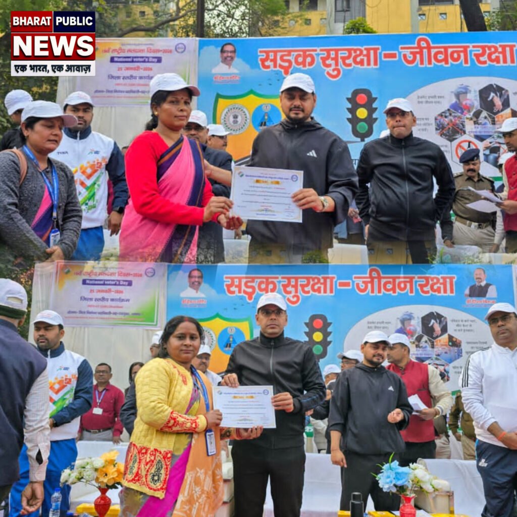 राष्ट्रीय सड़क सुरक्षा माह तथा राष्ट्रीय मतदाता दिवस के अवसर पर रविवार को रणधीर वर्मा चौक से गोल बिल्डिंग तक झारखंड की सबसे बड़ी मानव श्रृंखला का आयोजन किया गया। इसमें बड़ी संख्या में स्कूल कॉलेज के छात्र-छात्राएं, जिला प्रशासन के पदाधिकारी व कर्मी, आईआईटी आईएसएम, पूर्व मध्य रेलवे, पुलिस के जवान, सिविल सोसाइटी सहित 12000 से अधिक लोग शामिल हुए। समारोह को लेकर पीके रॉय कॉलेज के सामने एक विशाल मंच बनाया गया तथा मानव श्रृंखला के पूरे मार्ग पर लाउडस्पीकर के माध्यम से लोगों को दिशा निर्देश दिए गए। कार्यक्रम के समापन से पूर्व उपायुक्त सह जिला दंडकारी श्री आदित्य रंजन ने लोगों को सड़क सुरक्षा एवं मतदाता जागरूकता की शपथ दिलाई। नए मतदाताओं को उनके ईपिक कार्ड प्रदान किए तथा उत्कृष्ट कार्य करने वाले बीएलओ एवं बीएलओ सुपरवाइजरों को सम्मानित किया गया।इस अवसर पर उपायुक्त ने रणधीर वर्मा चौक से गोल्ड बिल्डिंग मानव श्रृंखला में शामिल हजारों की संख्या में आए लोगों को धन्यवाद दिया। वहीं सड़क सुरक्षा को लेकर कहा कि आज वैश्विक महामारी से अधिक लोगों की मृत्यु सड़क सुरक्षा का उल्लंघन करने से हो रही है।माइनिंग क्षेत्र के कारण बड़े बड़े वाहन चलते हैं। रोड नेटवर्क के मामले में धनबाद एक अहम शहर है। झारखंड का इकलौता डेडिकेटेड एट लेन शहर के अंदर है। इन सब की वजह से ओवर स्पीडिंग बहुत ज्यादा होती है। उसकी वजह से सड़क दुघर्टना में लोगों की मृत्यु होती है। कहा कि हम जितने जिम्मेदार नागरिक बनेंगे उतनी कम दुर्घटना होगी। अंधेरे के कारण हो रही दुर्घटना को रोकने के लिए कदम उठाए जा रहे हैं। ड्रिंक एंड ड्राइव भी दुर्घटना का मुख्य कारण है।वहीं राष्ट्रीय मतदाता दिवस को लेकर उपयुक्त ने सभी मतदाताओं को आगामी नगर निगम चुनाव में शत प्रतिशत मतदान करने की अपील की। विशेष कर शहरी क्षेत्र के वोटरों को अपनी सहभागिता सुनिश्चित करने और अच्छे उम्मीदवार चुनने की अपील की जिससे धनबाद सबसे सुंदर, स्वच्छ और अच्छे शहरों की गिनती में प्रथम स्थान प्राप्त करें। साथ ही कहा शहर में जगह जगह पर क्यूआर स्कैनर लगेंगे। नगरीय क्षेत्र की समस्याएं आम नागरिक स्कैन करके सीधा उसको अपलोड कर सकेंगे। रिस्पांस टीम शीघ्र उसको ठीक करेगी। अंत में उन्होंने सभी नागरिकों से जिम्मेदार ड्राइविंग करने तथा जिम्मेदार वोटर बनने का आह्वान किया।कार्यक्रम के दौरान वरीय पुलिस अधीक्षक श्री प्रभात कुमार ने सभी लोगों को सड़क सुरक्षा के प्रति जागरूक रहने का आह्वान किया। उन्होंने कहा कि घर के सदस्य जब भी दो पहिया वाहन लेकर निकले तो उन्हें हेलमेट लगाने के लिए आवश्यक जोर दें। छोटे बच्चों को वाहन चलाने की छूट नहीं दें। सड़क दुर्घटना रोकने की शुरुआत घर से ही 