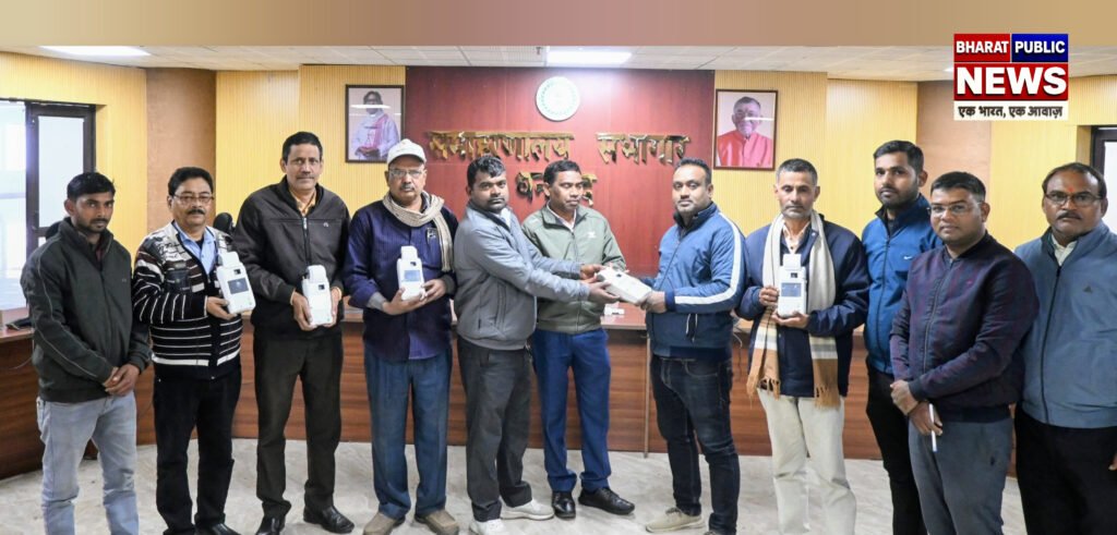 उपायुक्त सह जिला दंडाधिकारी आदित्य रंजन के निर्देश पर आपूर्ति विभाग द्वारा शुक्रवार को समाहरणालय के सभागार में धान अधिप्राप्ति केंद्रों (पैक्स) के बीच 4जी ई-पोस मशीन का वितरण किया गया।खारिज विपणन मौसम 2025-26 में धान अधिप्राप्ति योजना के अंतर्गत जिले के सभी 18 धान अधिप्राप्ति केंद्रों को यह मशीन दिया गया है। नई मशीन की गति अधिक होने के कारण धान अधिप्राप्ति की सभी प्रक्रिया में कम समय लगेगा और भुगतान भी शीघ्र होगा।मौके पर आपूर्ति विभाग के श्री संदीप कुमार, श्री अमित कुमार तथा विजन टेक टेक्निकल के श्री पिंटू कुमार सहित पैक्स के प्रतिनिधि मौजूद थे।