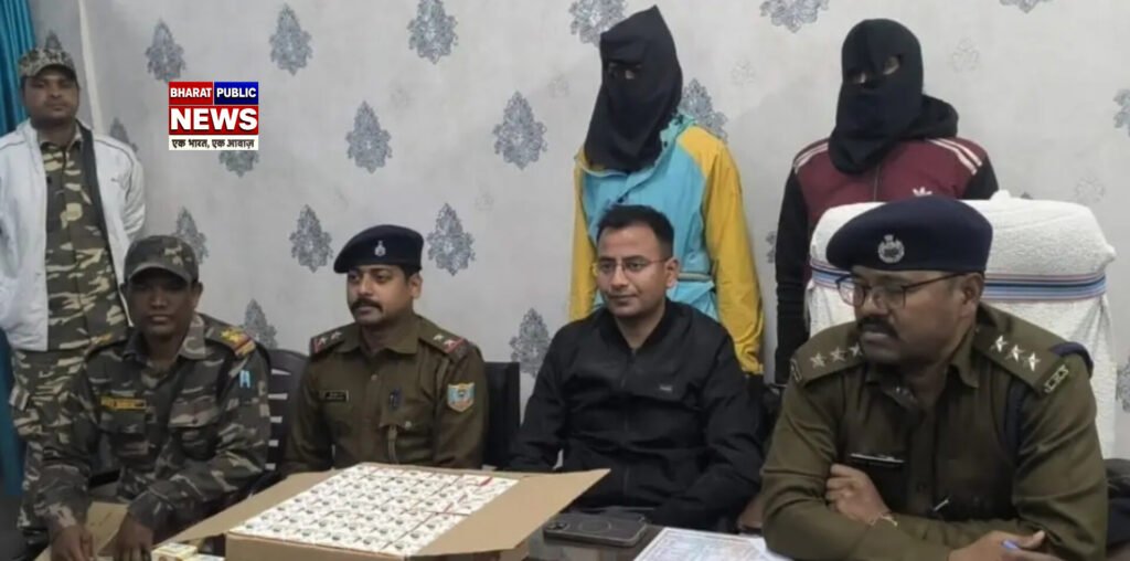 दुमका:गोपीकांदर पुलिस ने रविवार की देर रात गुप्त सूचना के आधार पर पाकुड़िया-दुमका मार्ग पर कारूडीह मोड़ के पास से अवैध विदेशी शराब लदी एक पिकअप वैन को जब्त किया है। साथ ही पिकअप के चालक देबू मुर्मू (30) वर्ष पिता जोना मुर्मू ग्राम जमनी थाना काठीकुंड और उपचालक किरण हेंब्रम ग्राम सुपाईडीह थाना जामताड़ा को हिरासत में लेकर सोमवार को जेल भेज दिया।इस मामले में थाना प्रभारी सुमित कुमार भगत ने बताया कि गुप्त सूचना के आधार पर कार्रवाई की गई है। गुप्त सूचना मिली थी कि पश्चिम बंगाल से दुमका की ओर एक सफेद महिंद्रा पिकअप वाहन से अवैध शराब का परिवहन किया जा रहा है। इसी के तहत पुलिस के द्वारा पाकुड़िया दुमका मार्ग पर कारूडीह मोड़ के पास जांच के क्रम में पिकअप वैन में 110 पेटी अवैध विदेशी शराब लदी हुई मिली, जिसमें फॉर सेल इन उत्तर प्रदेश ओन्ली लिखा हुआ कागज का पाउचनूमा 180 एम०एल० का विस्की एवं चार ब्लू रंग का ड्रम जिसमें प्रत्येक में करीब 200 लीटर स्प्रीट पाया गया।इस संबंध में उपरोक्त दोनों अभियुक्तों के विरुद्ध गोपीकांदर थाना में कांड संख्या 38/25 धारा 274/275/3 (5) बी०एन०एस एवं 47 (ए) उत्पाद अधिनियम के तहत मामला दर्ज किया गया है तथा इस अवैध शराब के कारोबार में अन्य सम्मिलित व्यक्तियों का सत्यापन पुलिस द्वारा किया जा रहा है। छापेमारी दल के सदस्यों में थाना प्रभारी सुमित कुमार भगत, एसआई भारत भुषण सिंह, मनोज सोरेन और पुलिस जवान शामिल थे।