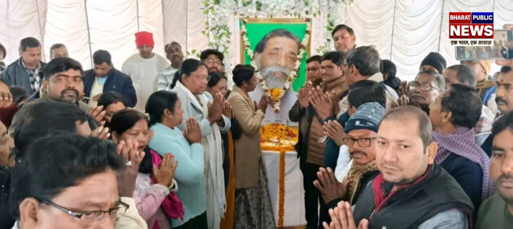 दुमका:झारखंड राज्य के निर्माता एवं झारखंड मुक्ति मोर्चा (झामुमो) के संस्थापक संरक्षक स्वर्गीय दिशोम गुरु वीर शिबू सोरेन की 82वीं जयंती दुमका जिले के खिजुरिया स्थित गुरुजी आवास में श्रद्धा एवं सम्मान के साथ मनाई गई। कार्यक्रम का आयोजन झामुमो जिला समिति द्वारा जिला अध्यक्ष शिव कुमार बास्की के नेतृत्व में किया गया।इस अवसर पर गुरुजी की तस्वीर पर 82 दीप प्रज्वलित कर पुष्प अर्पित किए गए। जामा विधायक डॉ. लुईस मरांडी ने भी कार्यक्रम में उपस्थित होकर गुरुजी की तस्वीर के समक्ष दीप प्रज्वलित कर पुष्पांजलि अर्पित की।जयंती के अवसर पर झामुमो जिला समिति द्वारा सेवा कार्य भी किए गए। फूलो-झानो मेडिकल अस्पताल में मरीजों के बीच फल वितरित किए गए, वहीं नेत्रहीन विद्यालय पहुंचकर बच्चों के बीच भी फल वितरण किया गया, जिससे कार्यक्रम को सेवा और संवेदना का स्वरूप मिला।कार्यक्रम में जिला सचिव निशित वरन गोलदार, चंदन भुवानिया, महिला मोर्चा अध्यक्ष सुनीता मरांडी, सचिव सबिता टुडू, राजेश सिंह, सत्तार खान, कादिर राजा, रवि यादव, सिराजुद्दीन अंसारी, पराक्रम शर्मा, विजय मल्लाह, विजय दास, मो. आरिफ, दीपक केवट, शास्तिपद नंदी, दिनेश दत्ता, बाबूजान हेंब्रम, नंदलाल राउत, शिवलाल मरांडी, अमित रक्षित, संजय मंडल, पिंकू हंसदा, आशित वरन गोलदार, महेश गण सहित झामुमो के अनेक सक्रिय कार्यकर्ता उपस्थित रहे।मौके पर उपस्थित नेताओं एवं कार्यकर्ताओं ने गुरुजी के विचारों को आत्मसात करने और उनके संघर्ष व योगदान को आगे बढ़ाने का संकल्प लिया।