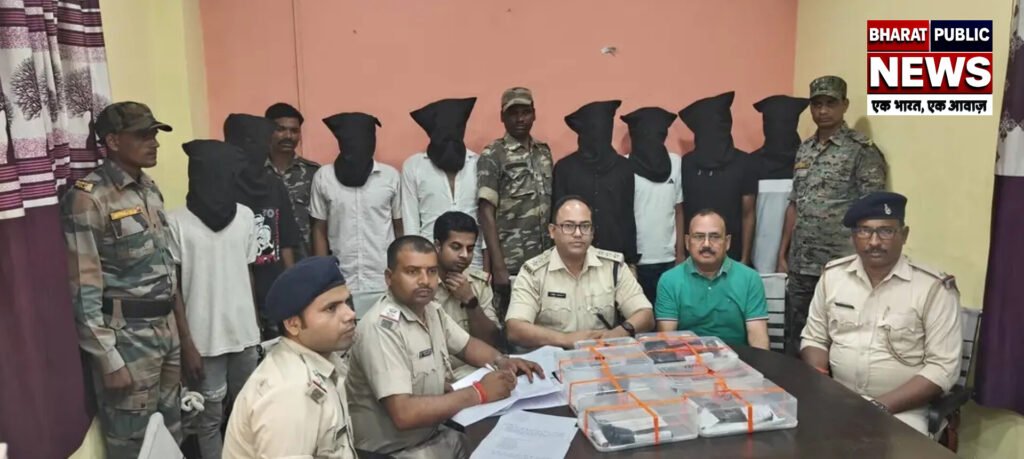ज्वेलरी शॉप और बैंक लूट करने वाला बिहार-झारखंड के दुर्दांत अपराधी धीरज मिश्रा के गिरोह के गढ़वा में आकर किसी ज्वेलरी शॉप में लूट की घटना को अंजाम देने की सूचना प्राप्त हुई। प्राप्त सूचना के आधार पर पुलिस अधीक्षक गढ़वा के निर्देश पर अनुमंडल पुलिस पदाधिकारी गढ़वा के नेतृत्व में एक छापामारी टीम का गठन किया गया। उक्त छापामारी टीम के द्वारा सादे लिवास में अलग-अलग स्वर्ण दुकानों के आसपास निगरानी रखी जा रही थी। इसी क्रम में करीब 2:30 बजे दो बाइक एवं 01 स्कूटी से 08 व्यक्ति संदेहास्पद स्थिति में डाल्टनगंज से टंडवा चौक की ओर आते हुए दिखे। इन्हें बैरिकेट लगाकर रोकने का प्रयास किया गया, तब ये लोग गाड़ी घुमाकर भागने का प्रयास किये, मगर छापामारी टीम के द्वारा सभी लोग को दौड़ाकर पकड़ लिया गया। आज इन सभी 08 अपराधियों को न्यायिक हिरासत में भेजा गया तथा इनकी निशानदेही पर इनके पास से 06 देशी कट्टा, 10 जिंदा गोली, 02 चाकू, 08 मोबाइल, 02 बाईक, 01 स्कूटी एवं 15000 रुपया नगद बरामद किया गया। इनके गिरोह में शामिल अन्य लोगों की गिरफ्तारी हेतु लगातार छापामारी की जा रही है। इस सम्बन्ध में गढ़वा थाना कांड संख्या-429/25 में कार्रवाई की गई है।