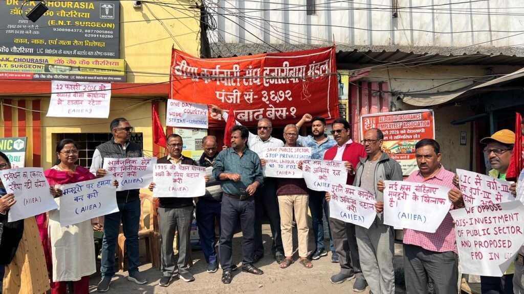 धनबाद : भारत का मजदूर वर्ग आज 12 फ़रवरी , 2026 को एक दिवसीय राष्ट्रव्यापी हड़ताल पर है। इस हड़ताल का आह्वान 10 केंद्रीय ट्रेड यूनियनों और अर्थव्यवस्था के विभिन्न क्षेत्रों में लाखों श्रमिकों का प्रतिनिधित्व करने वाले स्वतंत्र अखिल भारतीय संघों द्वारा किया गया है। देशभर के बीमा कर्मचारियों द्वारा अपने अखिल भारतीय बीमा कर्मचारी संघ (AIIEA) के आह्वान पर पूर्ण सहभागिता के साथ इस हड़ताल में भागीदारी निभाई गई।हजारीबाग मंडल के स्तर पर तमाम LIC कर्मियों ने अपने संगठन बीमा कर्मचारी संघ हजारीबाग मंडल (IEAHD) के बैनर तले अपने मंडल कार्यालय के अधिकार क्षेत्र के तहत आने वाले सभी 37 कार्यालयों में सम्पूर्ण तालाबंदी कर पूरी तरह से काम रोक कर इस हड़ताल को अपने स्तर से शत प्रतिशत अमली जामा पहनाया गया।इस अवसर पर धनबाद जिले के सभी एल आई सी कार्यालय में पूर्ण हड़ताल रही। इस अवसर पर अपना सन्देश देते हुए IEAHD के मंडलीय महासचिव जगदीश चंद मित्तल ने कहा 12 फ़रवरी निर्धारित औद्योगिक हड़ताल केवल नए श्रम संहिताओं, प्रत्यक्ष विदेशी निवेश (FDI) की सीमा में वृद्धि, या सार्वजनिक क्षेत्र के उपक्रमों के विनिवेश के विरुद्ध एक सामान्य विरोध नहीं है। यह वास्तव में भारतीय अर्थव्यवस्था को कॉरपोरेट हितों के पक्ष में पुनर्गठित करने की प्रक्रिया के खिलाफ एक गहन और मौलिक प्रतिरोध है—जिसका भार श्रमिकों, किसानों और हाशिये पर खड़े समुदायों पर पड़ रहा है।संघ के अध्यक्ष हेमंत मिश्रा ने कहा कि इस हड़ताल के केंद्र में चार श्रम संहिताओं के प्रति विरोध है। हमारा तर्क है कि इन संहिताओं ने लंबे समय से प्राप्त श्रमिक सुरक्षा प्रावधानों को कमजोर किया है। इन कानूनों के एकीकरण से नियुक्ति और छंटनी आसान हुई है, सामूहिक सौदेबाजी के अधिकार कमजोर हुए हैं, तथा मजदूरी, रोजगार सुरक्षा और कार्यस्थल सुरक्षा सुनिश्चित करने वाले नियामक तंत्र का क्षरण हुआ है। आज के हड़ताल को सफल बनाने के लिए हेमंत मिश्रा, जगदीश चंद्र मित्तल, अमित कुमार, सुबीर राम,अमरजीत राजवंशी, निशेष कुमार, बासु बहादुर, चंदनझा, राहुल कुमार, संजय पाठक, मनीषा कुमारी, नयनशर्मा, जागेश्वर राम ,अभिषेक कुमार , सुशील भगत सह अन्य का योगदान रहा।