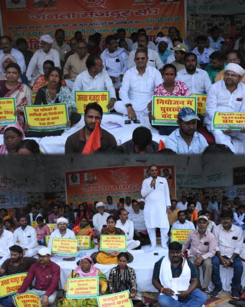 धनबाद :बीसीसीएल के मृत श्रमिकों के आश्रितों को 86 दिनों में नए एसओपी के तहत नियोजन स्वीकृत करने की मांग को लेकर जनता मजदूर संघ रणधीर वर्मा चौक पर सामूहिक उपवास सत्याग्रह पर बैठे. संघ के महामंत्री अभिषेक सिंह ने कहा कि कोल इण्डिया की बोर्ड मीटिंग में नीतियाँ बनती तो है पर वह कागजों पर ही सिमट कर रह जाती है. बीसीसीएल में 86 दिनों में नए एसओपी के तहत मृत श्रमिक के आश्रित को नियोजन देने की नीति बनी ओर यह नियम 2023 में बना आज 2026 चल रहा है पर एक भी नियोजन बीसीसीएल ने नहीं दिया.अभिषेक सिंह ने दावा किया है कि करीब 14 सौ से 15 सौ नियोजन पेंडिंग है. अभिषेक सिंह ने बीसीसीएल प्रबंधन पर भ्र्ष्टाचार के भी आरोप लगाए हैं. उन्होंने कहा नियोजन के मामले में घूसखोरी भी चरम पर है.अभिषेक सिंह ने कहा कि यह आंदोलन आगे और उग्र होगा. नियोजन मामले में बीसीसीएल गंभीर नहीं होती है तो आने वाले दिनों में कोयला उत्पादन को ठप करने काम किया जायेगा.