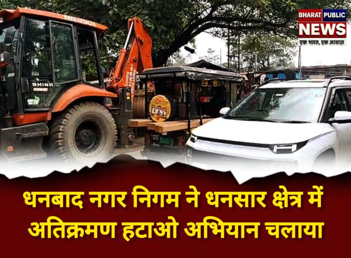 धनबाद नगर निगम ने धनसार क्षेत्र में अतिक्रमण हटाओ अभियान चलाया है, जिसमें बरमसिया एफसीआई गोदाम और...