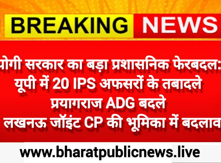 उत्तर प्रदेश सरकार ने पुलिस प्रशासन में बड़ा फेरबदल करते हुए 20 आईपीएस अधिकारियों के तबादले किए...