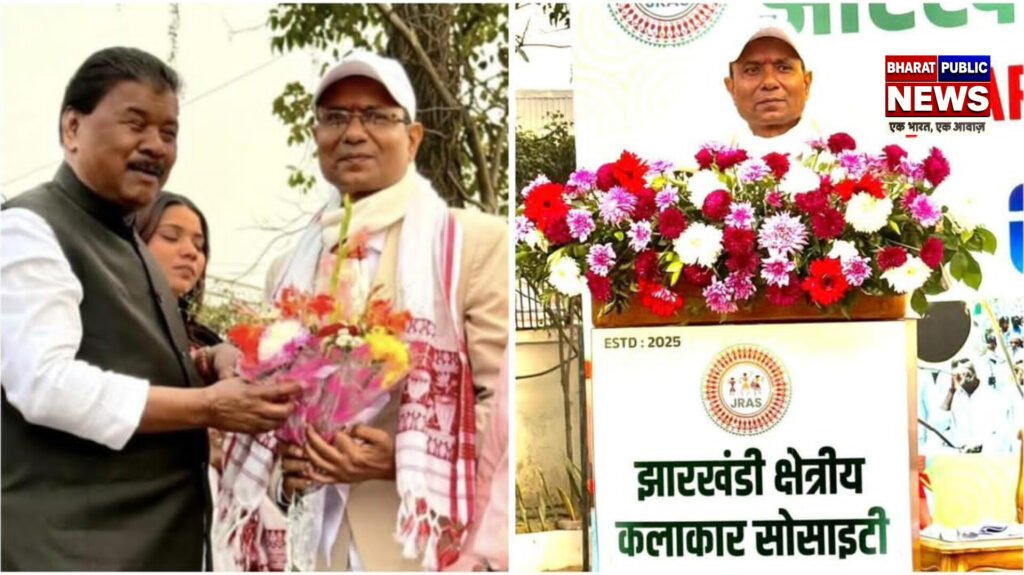 राँची । झारखंडी क्षेत्रीय कलाकार सोसाइटी के गठन के शुभ अवसर पर रांची के होटल चाणक्य बीएनआर में शपथ ग्रहण समारोह का आयोजन किया गया।जिसमें झारखंड के सभी क्षेत्रीय एवं जनजातीय भाषाओं के कलाकारों में से सोसाइटी के केंद्रीय एवं जिला कमिटी के पदाधिकारियों व सदस्यों ने शपथ ली।संगठन का विस्तार करते हुए केंद्रीय व जिला स्तर पर पद मनोनीत किए गए।इस मौके पर पद्मश्री महावीर नायक, झारखंड प्रदेश कांग्रेस कमिटी के कार्यकारी अध्यक्ष बंधु तिर्की एवं अन्य गण्यमान्यजन कलाकारों की गरिमामयी उपस्थिति में खोरठा के प्रसिद्ध गीतकार एवं लेखक दिनेश दिनमणि को उत्तरी छोटानागपुर प्रमंडल अंतर्गत खोरठा विभाग के संरक्षक, गीतकार विनय तिवारी को उत्तरी छोटानागपुर प्रमंडल खोरठा विभाग के अध्यक्ष एवं अभिनेता अमन राठौर को सचिव नियुक्त किया गया।कमिटी के केंद्रीय अध्यक्ष नागपुरी के प्रसिद्ध गायक पवन कुमार राय, उपाध्यक्ष अनिता बाड़ा,आलोक राज,राजू केरकेट्टा,ज्योति मिंज,सचिव रमन गुप्ता,मोनू राज,पंकज राय,सत्या महतो को बनाया गया।खोरठा गीतकार विनय तिवारी ने कहा कि जेआरएएस का उद्देश्य राज्य के कलाकारों को न सिर्फ सम्मान,बल्कि राष्ट्रीय स्तर तक पहुंचाने का हर संभव प्रयास किया जाएगा। वर्तमान समय में आधुनिकता और वाणिज्यिक मनोरंजन के प्रभाव से पारंपरिक लोक कला हाशिए पर चली गई है।झारखंडी नृत्य, गीत-संगीत, झूमर, नाटक और चित्रकला को पुनर्जीवित करने की जरूरत है।कार्यक्रम में दशरथ हांसदा, बर्षा ऋतु,मनोज शहरी, बुबई,सतीश दास, देव कुमार,बिक्रम रवानी,अभिषेक कुमार, युवा नेता संतोष पांडेय, रूपेश तिवारी समेत अनेक गण्यमान्य लोग उपस्थित रहें।