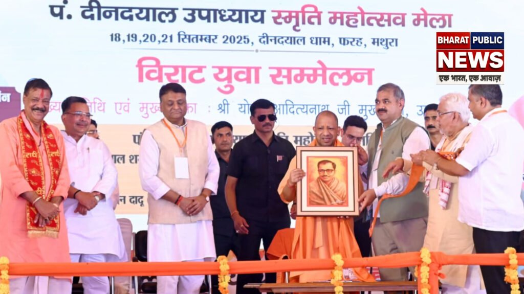 मथुरा में पंडित दीन दयाल उपाध्याय स्मृति महोत्सव का भव्य उद्घाटन*- बोले योगी – पीएम मोदी जी ने दीनदयाल जी के मंत्र को आत्मसात कर असंभव को कर दिखाया संभव**- पं. दीनदयाल जी का स्वदेशी मंत्र आज मोदी जी के नेतृत्व में हो रहा साकार : मुख्यमंत्री**- कश्मीर को कांग्रेस ने बना दिया था देश के लिए नासूर : योगी आदित्यनाथ* *- धारा 370 हटाना और राममंदिर निर्माण पंडित जी के विजन का परिणाम : योगी आदित्यनाथ* *- प्रदेश को 8वें से उठाकर नंबर दो की अर्थव्यवस्था बनाने का संकल्प पूरा, अब बनाना है विकसित यूपी : योगी**- CM युवा स्कीम से अबतक 70 हजार युवाओं को मिला 5 लाख तक का लोन : मुख्यमंत्री**- युवाओं से सीएम योगी की अपील, ‘जॉब सीकर नहीं, जॉब क्रिएटर बनो’**- त्योहारों पर स्वदेशी उत्पादों को अपनाने की मुख्यमंत्री ने की जनता से अपील**- कांग्रेस-सपा पर हमला, यूपी की अर्थव्यवस्था को कमजोर किया**- ODOP से 2 करोड़ से अधिक लोगों को मिला रोजगार : मुख्यमंत्री**- आत्मनिर्भर भारत का आधार है स्वदेशी मॉडल : योगी आदित्यनाथ**मथुरा, 19 सितंबर।* अन्त्योदय के प्रणेता और एकात्म मानव दर्शन के प्रखर वक्ता पंडित दीन दयाल उपाध्याय की स्मृति में आयोजित चार दिवसीय स्मृति महोत्सव में मुख्यमंत्री योगी आदित्यनाथ ने श्रद्धांजलि अर्पित करते हुए कहा कि पंडित जी का सपना आज प्रधानमंत्री नरेन्द्र मोदी के नेतृत्व में साकार हो रहा है। मुख्यमंत्री ने कहा कि पंडित उपाध्याय जी ने 1950 के दशक में भारत के राजनीतिक नेतृत्व को जो दृष्टि दी थी, वही आज “वोकल फॉर लोकल” और “स्वदेशी” के रूप में मूर्तरूप ले चुकी है। उन्होंने कहा कि पीएम मोदी के नेतृत्व में असंभव को संभव बनाया गया है, चाहे कश्मीर से धारा 370 हटाना हो, अयोध्या में भव्य राममंदिर का निर्माण हो या 80 करोड़ लोगों को मुफ्त राशन उपलब्ध कराना हो। सीएम ने कहा कि जो कभी असंभव लगता था, वही आज देश की ताकत बन चुका है। यही पंडित जी के मंत्र का प्रभाव है कि भारत दुनिया की चौथी सबसे बड़ी अर्थव्यवस्था बन चुका है और जल्द ही तीसरे स्थान पर पहुंचेगा।*युवाओं के लिए नई राह : स्टार्टअप और स्वरोजगार*मुख्यमंत्री ने युवाओं को संबोधित करते हुए कहा कि आज का समय युवाओं का है। यूपी के पास सबसे बड़ी युवा ऊर्जा है और यही भारत को आगे ले जाएगी। उन्होंने बताया कि “सीएम युवा स्कीम” के तहत सरकार 5 लाख रुपए तक का ब्याजमुक्त, गारंटी मुक्त लोन उपलब्ध करा रही है। जनवरी से अब तक 70 हजार युवाओं ने इसका लाभ उठाया है और लक्ष्य 1 लाख युवाओं तक पहुंचने का है। उन्होंने कहा कि आज भारत का युवा जॉब सीकर नहीं, बल्कि जॉब क्रिएटर बन रहा है। स्टार्टअप केवल आईटी सेक्टर में ही नहीं बल्कि ODOP (वन डिस्ट्रिक्ट वन प्रोडक्ट) और गो आधारित खेती जैसे क्षेत्रों में भी स्टार्टअप उभर रहे हैं। उ