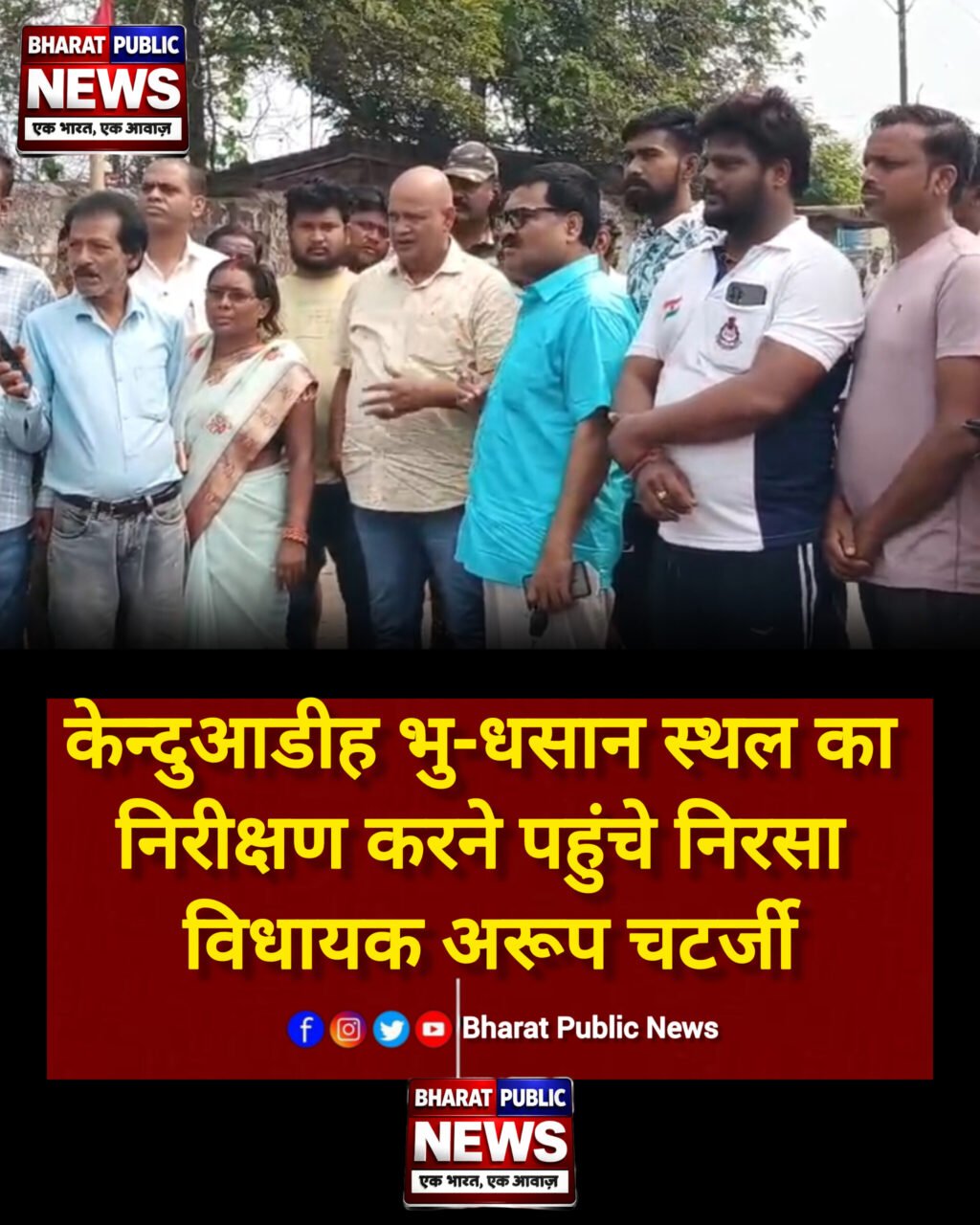 निरसा विधायक अरूप चटर्जी रांची जाने कें क्रम में शुक्रवार की सुबह केन्दुआडीह भु-धसान व गैस रिसाव क्षेत्र का निरीक्षण करने पहुंचे। मौके पर आजसू कें जिला अध्यक्ष मंटू महतो अपने दर्जनों समर्थको एवं प्रभावित ग्रामीणों कें मौजूद थे। घटनास्थल का निरीक्षण और जायजा लेने के बाद अरूप चटर्जी और मंटू महतो ने केंदुआ पांच नंबर इमामबाड़ा क्षेत्र के प्रभावित लोगो से भी मुलाकात कर लोगों की समस्या को सुना। प्रभावित लोगों का कहना है कि कोई भी अधिकारी या नेता हमलोगों को स्पष्ट जवाब नही दे रहे है। सभी का कहना है कि बेलगड़िया ही एक विकल्प है, जबकि बेलगड़िया का क्वाटर रहने लायक नही है। रोजगार के सबंध मे भी स्पष्ट जानकारी नही दी जा रही है। वही अरूप चटर्जी ने कहा कि इस समस्या को विधान सभा के विशेष समिति के समक्ष रखेंगे और यहां की जनता के इच्छानुसार ही काम होगा। वही मंटू महतो ने कहा कि बीसीसीएल के अधिकारी और प्रशासनिक अधिकारी को जमीनी हकीकत मालूम नही है। वर्षो से रह रहे लोगों की हो रही समस्याओं को जमीनीस्तर से प्रशासन को समझने की जरूरत है।वही मंटू महतो ने कहा कि अगामी 23 अप्रैल को वह हजारो की संख्या में लोगों के साथ रणधीर वर्मा चौक पहुंच कर डीजीएमएस और उपायुक्त को इस सबंध मे ज्ञापन सौपने का काम करेंगे। उन्होंने कहा कि उम्मीद है कि धनबाद के उपायुक्त प्रभावित लोगों की मांगों पर ध्यान देंगे