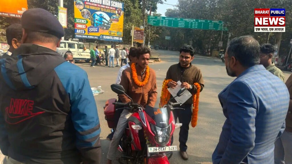 दुमका:सड़क सुरक्षा माह 2026 के तहत दुमका में यातायात नियमों के पालन को लेकर प्रशासन द्वारा लगातार जागरूकता अभियान चलाया जा रहा है। इसी क्रम में सोमवार को डीसी चौक एवं गांधी मैदान के समीप सड़क सुरक्षा जागरूकता अभियान आयोजित किया गया, जिसका उद्देश्य सड़क दुर्घटनाओं पर प्रभावी नियंत्रण और आम नागरिकों में सुरक्षा के प्रति जिम्मेदारी का भाव पैदा करना था।अभियान के दौरान जिला परिवहन पदाधिकारी, दुमका ने बिना हेलमेट पहने दोपहिया वाहन चालकों को फूलों की माला पहनाकर एवं तिलक लगाकर हेलमेट पहनने का संदेश दिया। वहीं, बिना सीट बेल्ट लगाए चारपहिया वाहन चालकों से भी रुककर सीट बेल्ट लगाने की अपील की गई।इस अवसर पर मानवीय पहल के तहत दो जरूरतमंद लोगों को निःशुल्क हेलमेट भी प्रदान किए गए। जिला परिवहन पदाधिकारी ने कहा कि हेलमेट और सीट बेल्ट केवल कानूनी अनिवार्यता नहीं हैं, बल्कि ये जीवन की सुरक्षा के सबसे महत्वपूर्ण साधन हैं। थोड़ी सी लापरवाही जानलेवा साबित हो सकती है।कार्यक्रम में सड़क सुरक्षा समिति के सदस्य, यातायात विभाग के अधिकारी एवं समाजसेवी संगठन भी शामिल रहे। सभी ने आम लोगों से यातायात नियमों का पालन करने और सुरक्षित सड़क संस्कृति को अपनाने की अपील की। प्रशासन ने स्पष्ट किया कि इस तरह के जागरूकता अभियान आगे भी जिले के विभिन्न चौक-चौराहों पर जारी रहेंगे।