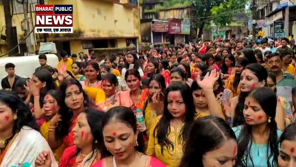 धनबाद। शहर में दुर्गा पूजा की दशमी पर मां दुर्गा की विदाई के अवसर पर पारंपरिक उल्लास और आस्था का अद्भुत संगम देखने को मिला। हीरापुर हरी मंदिर एवं दुर्गा मंदिर परिसर में दशमी पूजा के पश्चात महिलाओं ने सिंदूर खेला की परंपरा निभाई। सुहागिन महिलाओं ने मां दुर्गा को सिंदूर अर्पित कर एक-दूसरे की मांग में सिंदूर लगाकर उनके अखंड सौभाग्य और पतियों की दीर्घायु की मंगलकामना की। इस दौरान मंदिर परिसर में भक्ति और उत्सव का खास माहौल बना रहा।”सिंदूर खेला” बंगाल की एक प्राचीन परंपरा है, जो दशमी के दिन दुर्गा मां की विदाई से जुड़ी होती है। इसका उद्देश्य मां दुर्गा से आशीर्वाद लेकर वैवाहिक जीवन की खुशहाली और परिवार की समृद्धि की कामना करना है। महिलाएं लाल साड़ियों में सजी-धजी एक-दूसरे के साथ सिंदूर लगाकर उल्लासपूर्वक नृत्य करती रहीं।दूसरी ओर, घट विसर्जन का कार्यक्रम भी उत्साह और भक्ति के साथ सम्पन्न हुआ। बारिश के बावजूद बड़ी संख्या में महिला, पुरुष, बच्चे और बुजुर्ग बांग्ला डीजे की धुन पर थिरकते हुए जुलूस की शक्ल में निकले। गाजे-बाजे और ढोल-नगाड़ों की गूंज के बीच श्रद्धालु स्थानीय तालाब पहुंचे और मां दुर्गा के कलश का विसर्जन किया। इस दौरान पूरा वातावरण “बोलो दुर्गा मां की जय” के जयघोष से गुंजायमान हो उठा।दशमी के दिन हुए इन अनुष्ठानों के साथ ही नौ दिनों तक चली दुर्गा पूजा का समापन हुआ। श्रद्धालुओं ने विश्वास जताया कि मां दुर्गा का आशीर्वाद उनके जीवन में सुख-समृद्धि और शांति लेकर आएगा।
