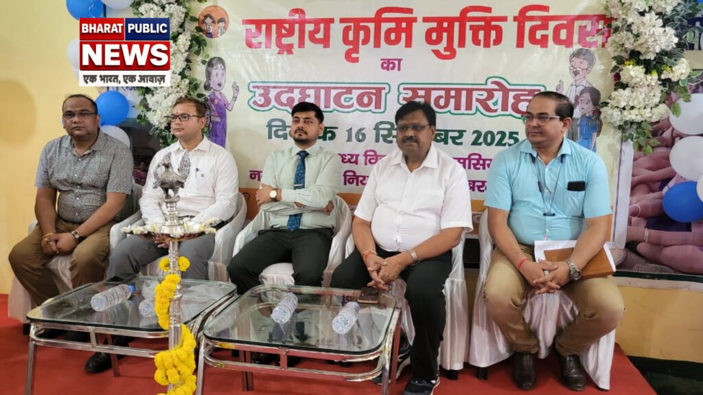 उपायुक्त सह जिला दंडाधिकारी श्री आदित्य रंजन ने आज बरमसिया स्थित मिडिल स्कूल में एल्बेंडाजोल गोली का सेवन कर राष्ट्रीय कृमि मुक्ति दिवस अभियान का शुभारंभ किया।इस अवसर पर उन्होंने कहा कि कृमि मुक्त समाज का निर्माण करना केंद्र एवं राज्य सरकार का उद्देश्य है। इस दवा का सेवन नहीं करने से सरकार का पोषण कार्यक्रम व्यर्थ हो जाएगा क्योंकि शरीर में जाने के बजाय सारा पोषण कृमि को मिलेगा। कहा कि अभियान के दौरान एक भी बच्चा छूट नहीं इसके लिए शिक्षा विभाग को निर्देशित किया है। दवा के सेवन से बच्चे कृमि मुक्ति होंगे और स्वस्थ समाज का निर्माण होगा।उपायुक्त ने कहा कि अभियान के दौरान जिले में एक से 19 वर्ष के 3 लाख 86 हजार 159 बच्चों को दवा खिलाने का लक्ष्य निर्धारित है। आज बलियापुर में 23517, गोविंदपुर में 48572, टुंडी में 26853 व पूर्वी टुंडी में 9966 बच्चों को गोली का सेवन कराया जाएगा। जबकि 18 सितंबर को बाघमारा में 61170, धनबाद सदर में 80638, झरिया में 41881, निरसा में 66573, एवं तोपचांची में 26989 बच्चों को दवा खिलाने का लक्ष्य निर्धारित है। वहीं 19 सितंबर को मॉप-अप डे के दौरान बलियापुर, गोविंदपुर, टुंडी व पूर्वी टुंडी में छुटे हुए बच्चों को कृमि नाशक एल्बेंडाजोल की गोली का सेवन कराया जाएगा। वहीं 19 एवं 20 सितंबर को बाघमारा, निरसा, झरिया, तोपचांची एवं धनबाद सदर में मॉप-अप डे के दौरान छुटे हुए बच्चों को गोली का सेवन कराया जाएगा।इससे पहले विद्यालय पहुंचने पर विद्यालय के छात्राओं ने पारंपरिक तरीके से उपायुक्त का स्वागत किया। छात्राओं ने मनमोहक नृत्य भी प्रस्तुत किया।अभियान के शुभारंभ के दौरान उपायुक्त श्री आदित्य रंजन, सिविल सर्जन डॉ आलोक विश्वकर्मा, जिला शिक्षा पदाधिकारी श्री अभिषेक झा, डीपीएम श्रीमती प्रतिमा कुमारी के अलावा विद्यालय के प्राचार्य, शिक्षक एवं छात्र मौजूद थे।