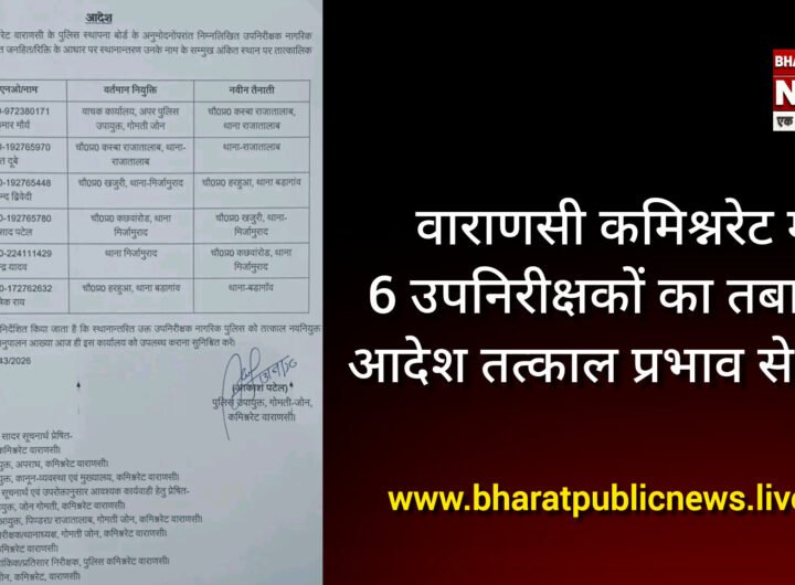 वाराणसी कमिश्नरेट में 6 उपनिरीक्षकों का तबादला, आदेश तत्काल प्रभाव से लागूकमिश्नरेट वाराणसी के गोमती जोन में...