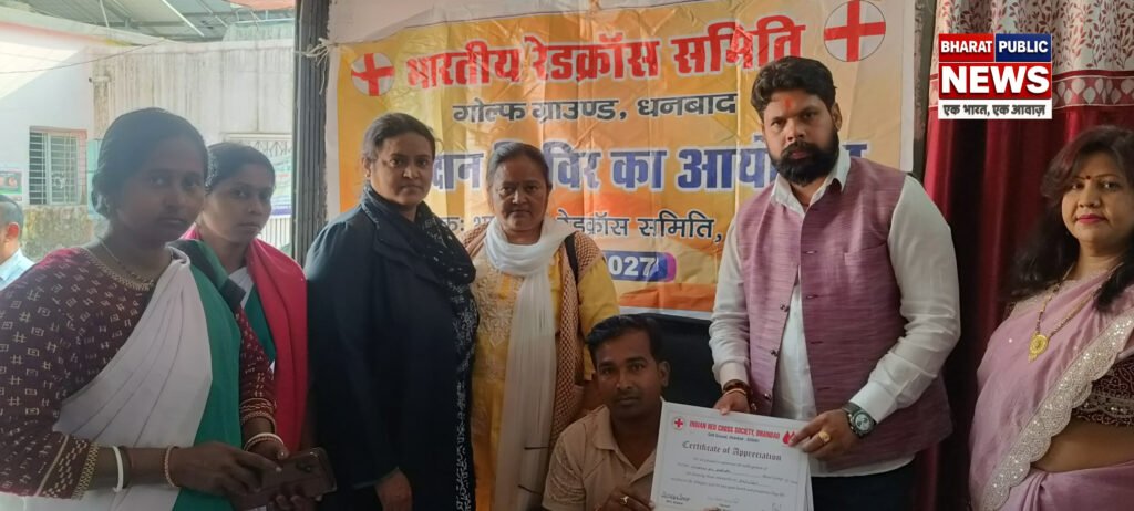 धनबाद: सोमवार 24 नवंबर को सामुदायिक स्वास्थ्य केंद्र बलियापुर एवं भारतीय रेडक्रॉस सोसाइटीज धनबाद के संयुक्त तत्वाधान में स्वैच्छिक रक्तदान शिविर का आयोजन किया गया।स्वैच्छिक रक्तदान शिविर का आयोजन राज्यपाल सचिवालय के द्वारा निर्गत पत्र पत्रांक संख्या 2316 दिनांक 22.08.2025 एवं झारखण्ड शिक्षा परियोजना परिषद के द्वारा निर्गत पत्र पत्रांक संख्या एमइ 01/1348/2025/3978 दिनांक 16.10.2025 एवं असैनिक शल्य चिकित्सा पदाधिकारी धनबाद के पत्रांक संख्या 2911दिनांक 10/1125 के आलोक में झारखण्ड राज्य स्थापना दिवस के उपलक्ष में भारतीय रेडक्रॉस समिति, धनबाद एवं सामुदायिक स्वास्थ्य केंद्र बलियापुर में किया गया।आज के रक्तदान शिविर संयुक्त सचिव भारतीय रेडक्रॉस सोसाइटीज, धनबाद दिलीप सिंह, नोडल पदाधिकारी ब्लड डोनेशन प्रोग्राम भारतीय रेडक्रॉस सोसाइटीज बेनज़ीर परवीन, एवं प्रभारी चिकित्सा पदाधिकारी सामुदायिक स्वास्थ्य केंद्र बलियापुर डाॅ राहुल, बी टी टी बिपाशा महतो के नेतृत्व में किया गया।संग्रहीत रक्त सदर अस्पताल धनबाद के ब्लड सेंटर को सुपुर्द कर दिया गया। सदर अस्पताल से उदय कुमार, आशीष कुमार, शत्रुघ्न आदि ने रक्त संग्रह किया। सभी डोनर को सर्टिफिकेट और डोनर कार्ड दिया गया है।