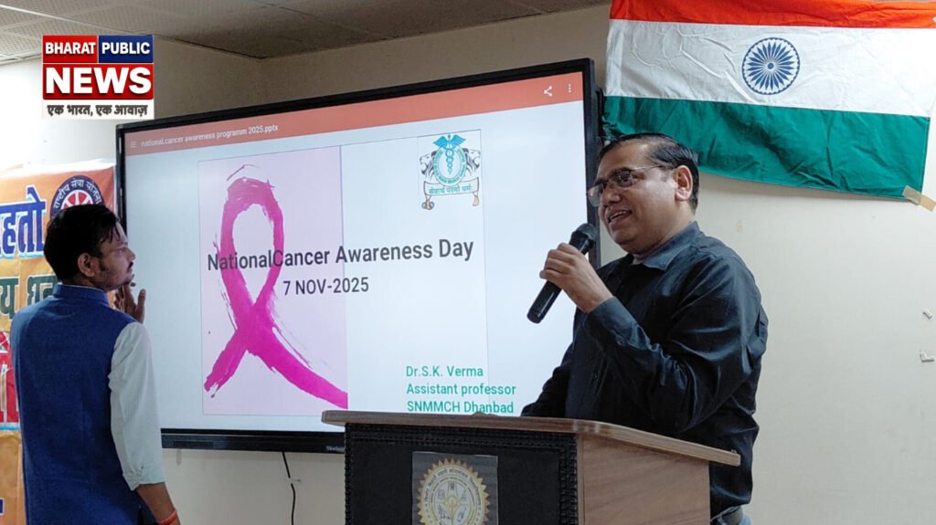 धनबाद। बिनोद बिहारी महतो कोयलांचल विश्वविद्यालय (बीबीएमकेयू) में शुक्रवार को राष्ट्रीय सेवा योजना (एनएसएस) की ओर से राष्ट्रीय कैंसर जागरूकता दिवस के अवसर पर एक कार्यशाला का आयोजन किया गया। विश्वविद्यालय के सभागार में आयोजित इस सेमिनार में बड़ी संख्या में छात्र-छात्राओं ने भाग लिया।कार्यक्रम की अध्यक्षता विश्वविद्यालय के कुलपति प्रोफेसर रामकुमार सिंह ने की, जबकि मुख्य अतिथि के रूप में मच के ऑन्कोलॉजी विभाग के विभागाध्यक्ष डॉ. एस.के. वर्मा उपस्थित रहे। डॉ. वर्मा ने छात्रों को कैंसर जैसी घातक बीमारी के कारण, लक्षण, रोकथाम और बचाव के उपायों के बारे में विस्तृत जानकारी दी। उन्होंने कहा कि जीवनशैली में सुधार, संतुलित आहार और नियमित स्वास्थ्य जांच से कैंसर के खतरे को काफी हद तक कम किया जा सकता है।इस अवसर पर विश्वविद्यालय के कई पदाधिकारी सहित अन्य गणमान्य लोग मौजूद रहे।कार्यक्रम के संयोजक प्रोफेसर मुकुंद रविदास ने बताया कि इस कार्यशाला का मुख्य उद्देश्य युवाओं को कैंसर के प्रति जागरूक करना और उन्हें समाज में स्वास्थ्य संबंधी संदेश फैलाने के लिए प्रेरित करना है।